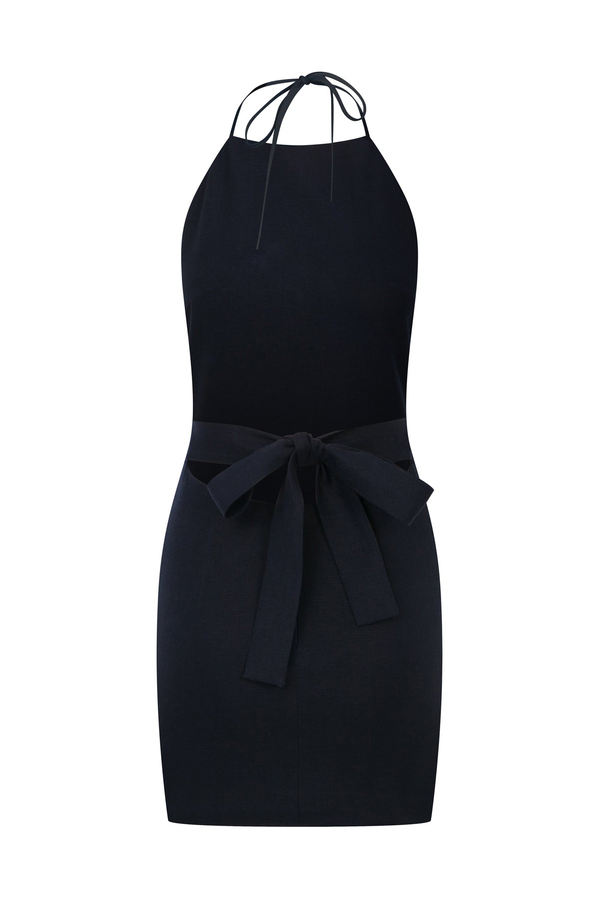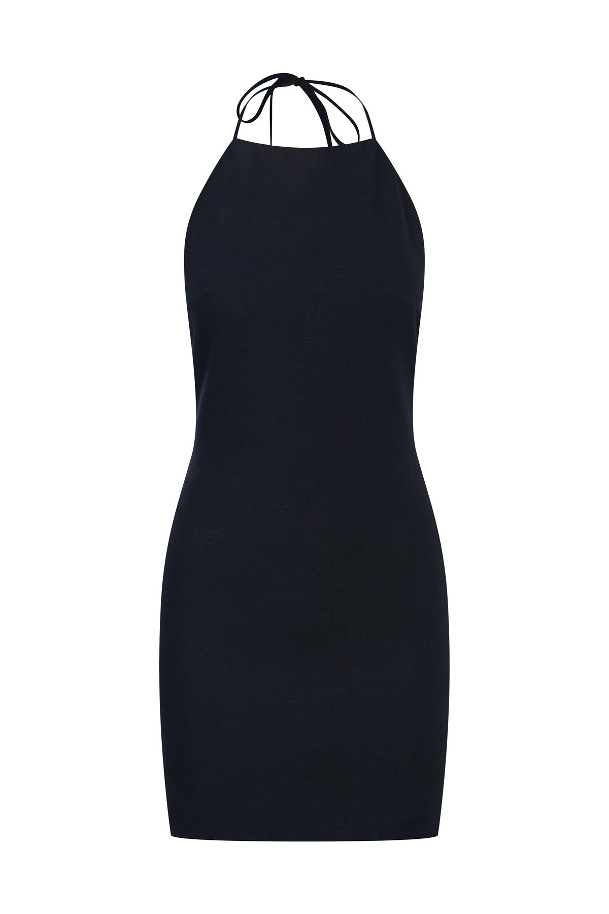 Ürün Açıklaması: Boyundan ince, sırt kısmında kalın bağcık kapamalı, belde gizli fermuarlı cotton vual astarlı 100% keten mini elbise