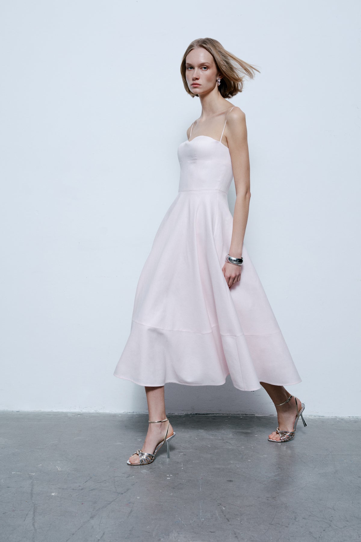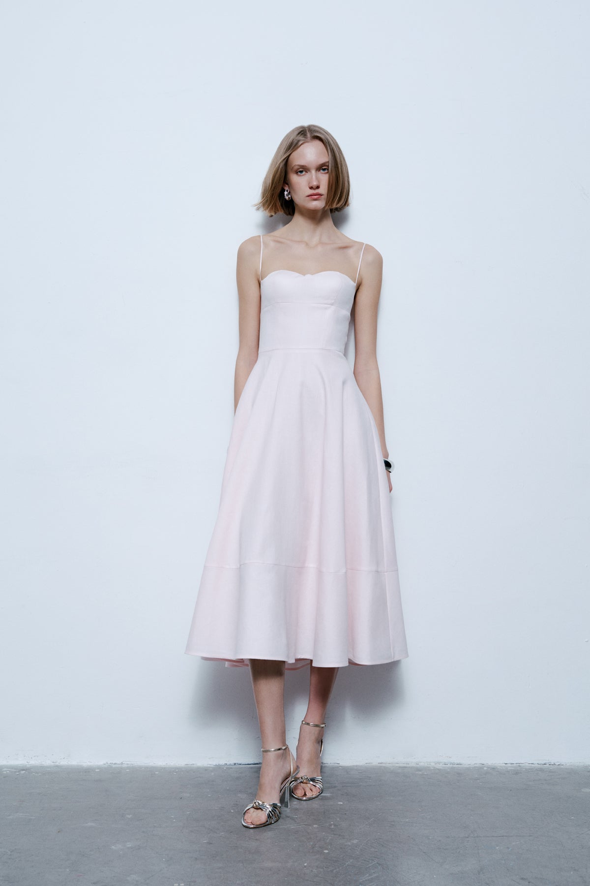 Ürün Açıklaması:Kalp yaka, ayarlanabilir ince askılı, göğüs kısmı globlu (pedli), etekleri volanlı, sırt kısmı gizli fermuarlı, cotton vual astarlı 100% keten midi elbise midi elbise Kumaş Bilgisi:%100 Linen Bakım Önerileri: Sadece kuru temizleme yapılabilir.