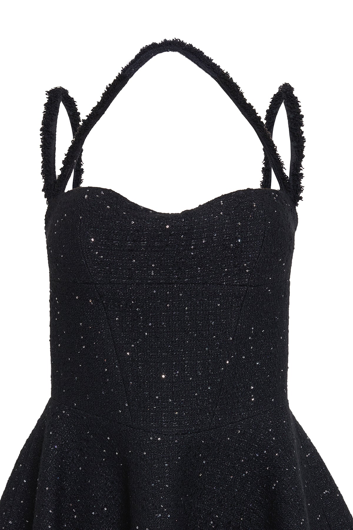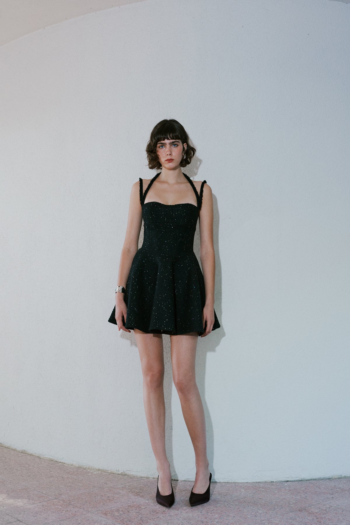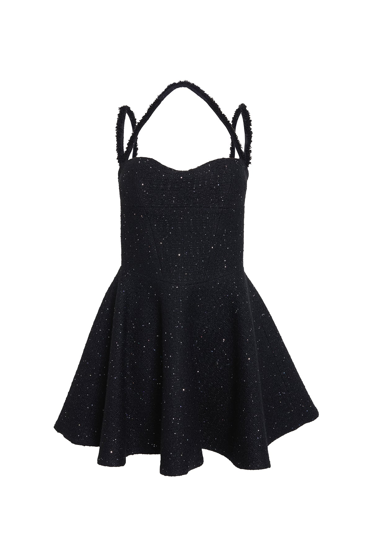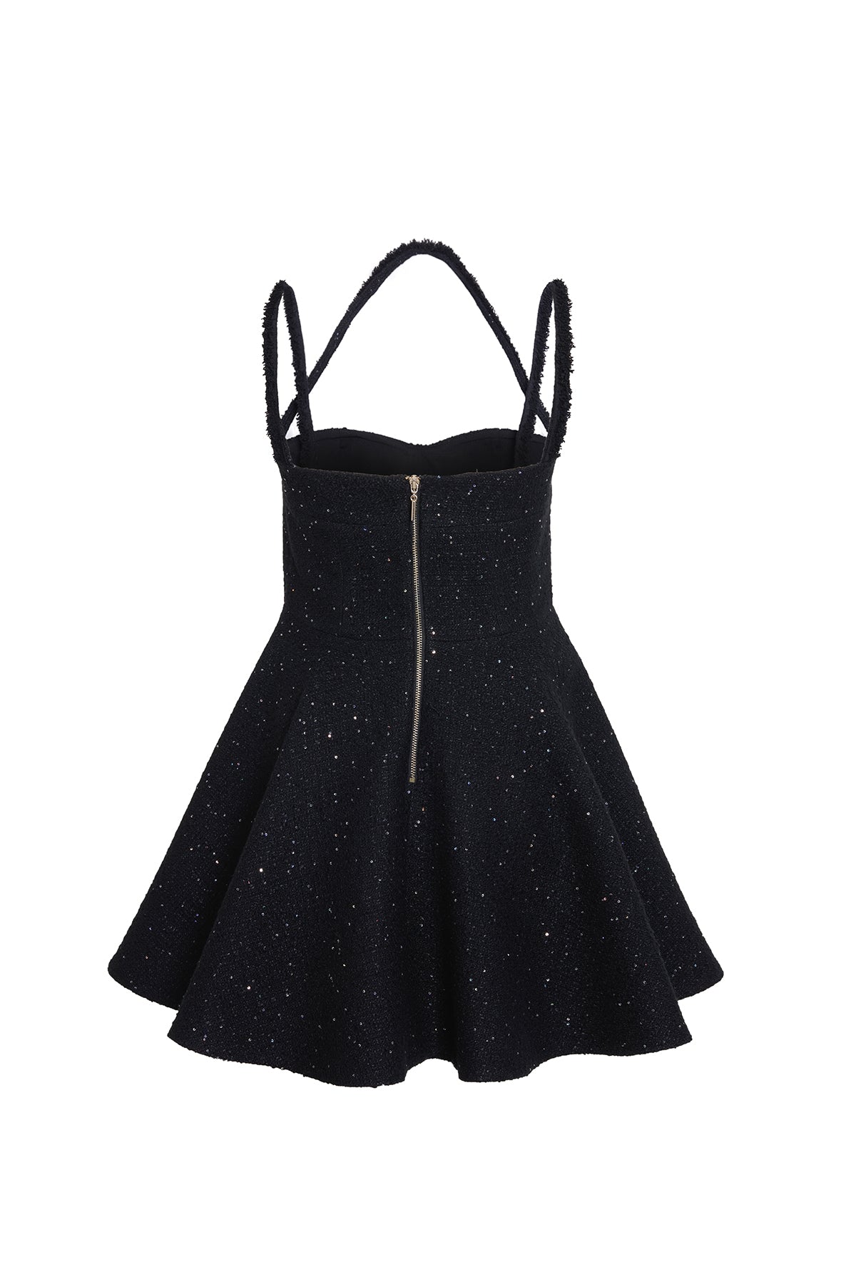 Ürün Açıklaması: Kalp yaka, ince üç askılı, eteği volanlı, sırt kısmı fermuar kapamalı, cepli mini elbise Kumaş Bilgisi: %40 acrylic %30 wool % 28 pes %2 of Bakım Önerileri: Sadece Kuru temizleme yapılabilir.