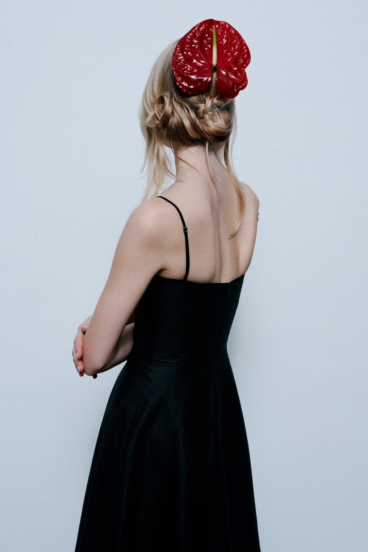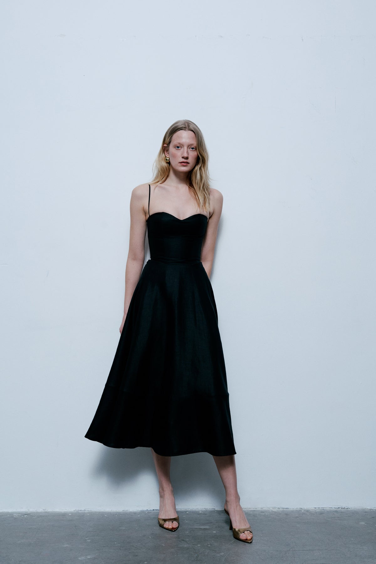 Ürün Açıklaması:Kalp yaka, ayarlanabilir ince askılı, göğüs kısmı globlu (pedli), etekleri volanlı, sırt kısmı gizli fermuarlı, cotton vual astarlı 100% keten midi elbise midi elbise Kumaş Bilgisi:%100 Linen Bakım Önerileri: Sadece kuru temizleme yapılabilir.