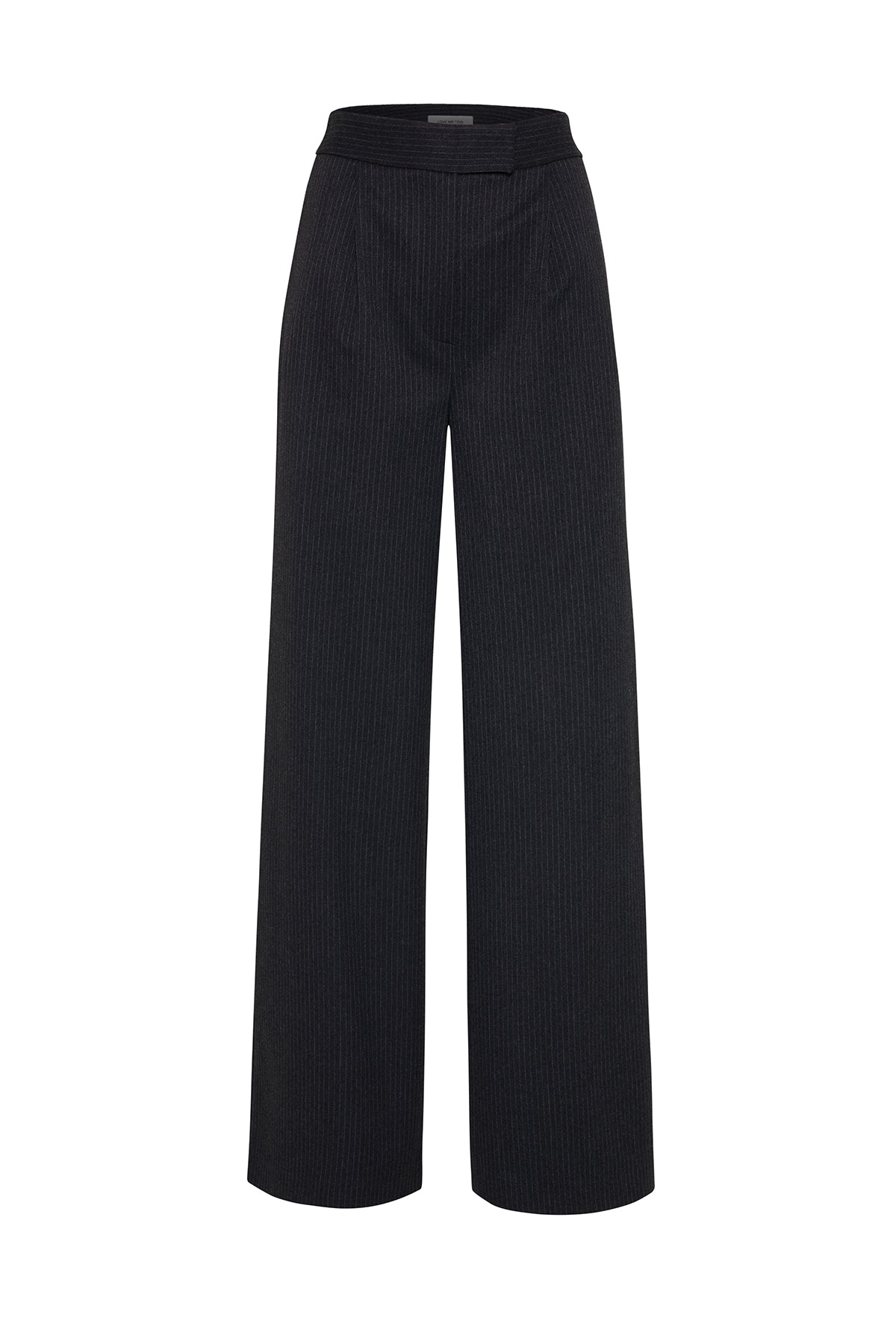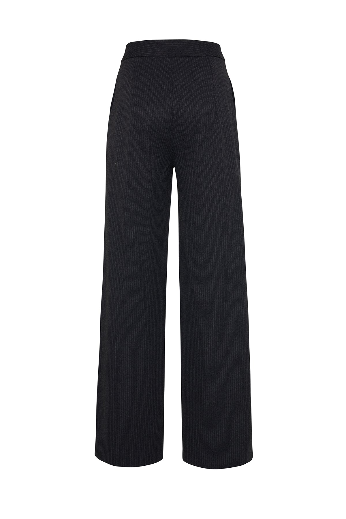 Ürün Açıklaması:Cepli, gizli kanca kapaklı, ön pilili, çizgili bol paça pantolon Kumaş Bilgisi: %63 Pes %33 Viscon % 5 Elastan Bakım Önerileri: Kuru temizleme yapılabilir. 30º Max yıkama. Ağartıcı kullanmayınız. Tamburlu kurutma yapmayınız. Orta ısıda ütülenebilir.
