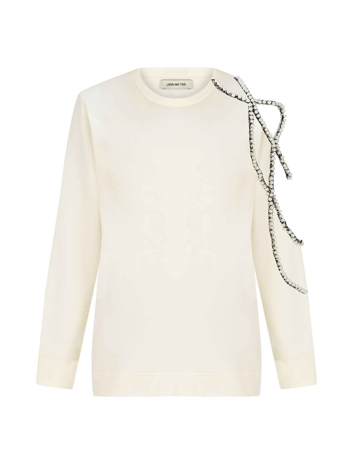 Ürün Açıklaması:Tek omuzu incili aksesuar işlemeli ve dekolteli, bisiklet yaka sweatshirt Kumaş Bilgisi: %100 Cotton Bakım Önerileri: 30º Max Yıkama Tersten yıkayın Ağartıcı kullanmayın Tamburlu kurutma yapmayın Orta ısıda ütüleme yapın Kuru temizleme yapılabilir.