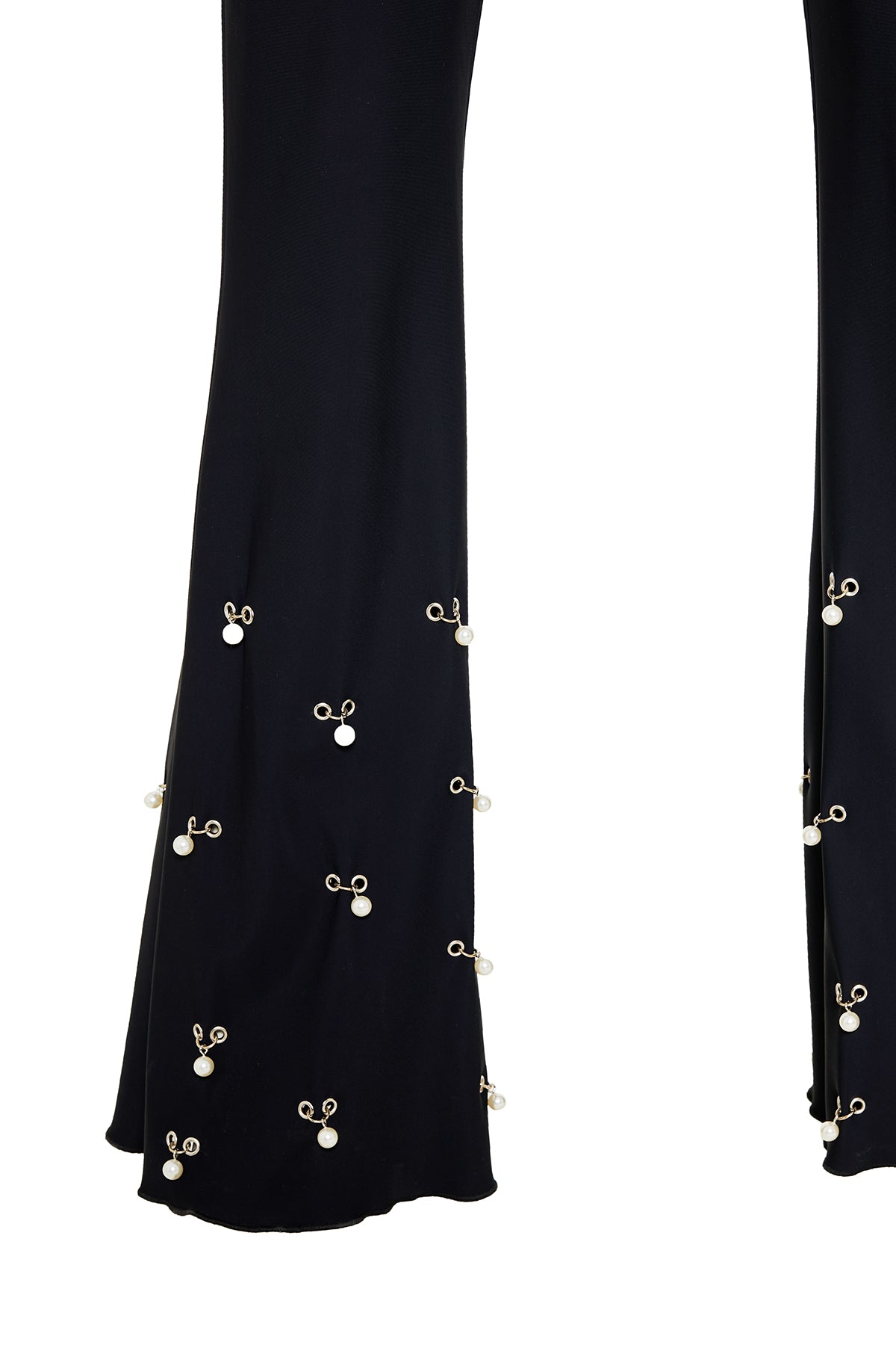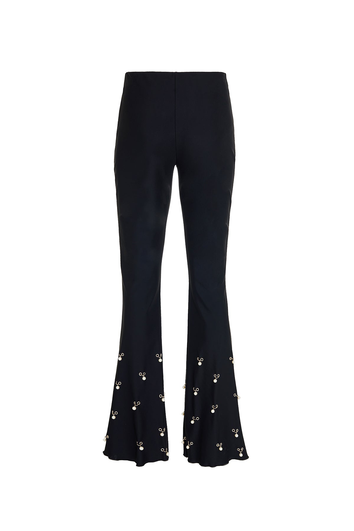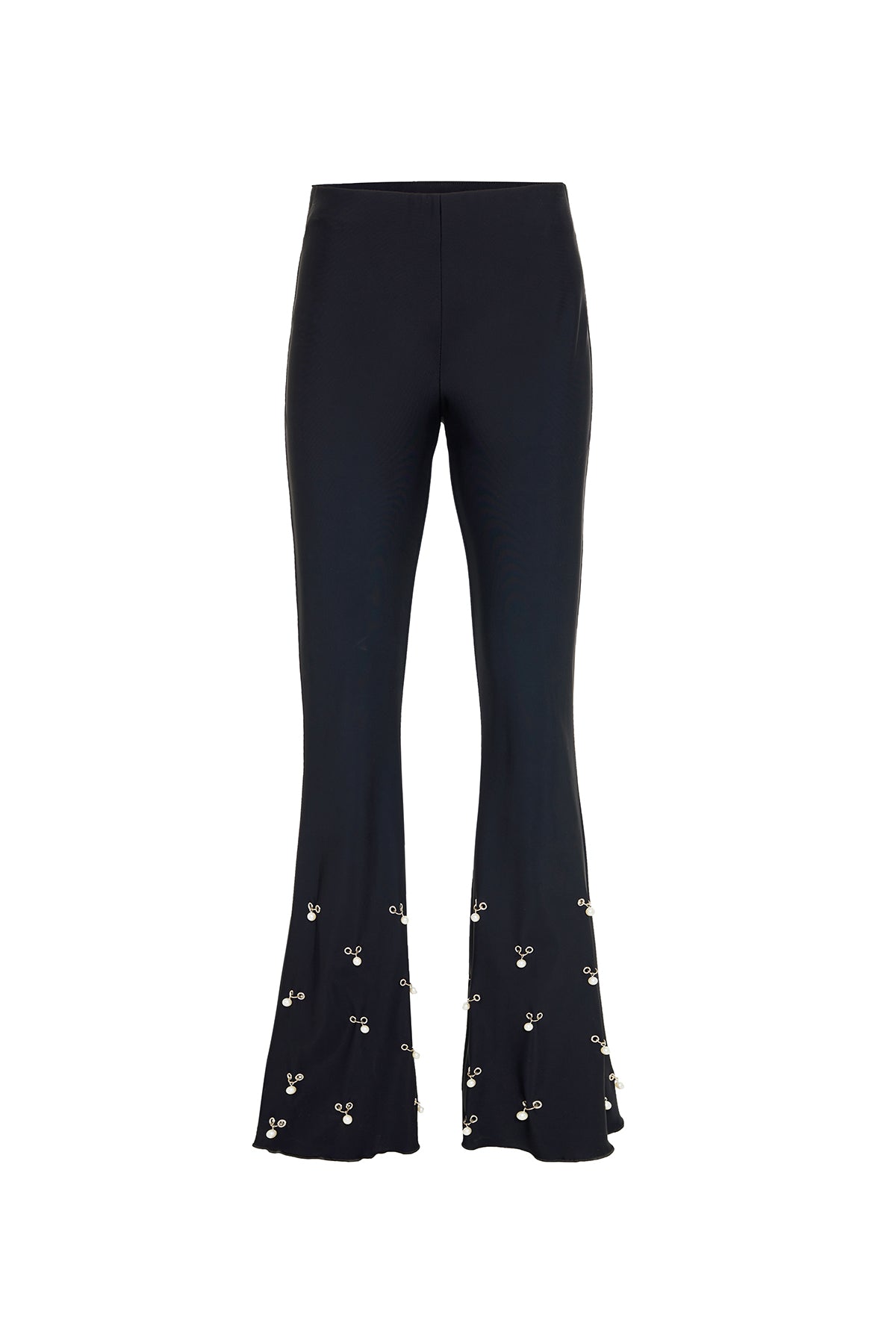 Ürün Açıklaması: Flare paça, paçaları kuş gözlü ve incili aksesuar detaylı pantolon Kumaş Bilgisi:77%NLY 23%SP Bakım Önerileri: Sadece kuru temizleme yapılabilir.