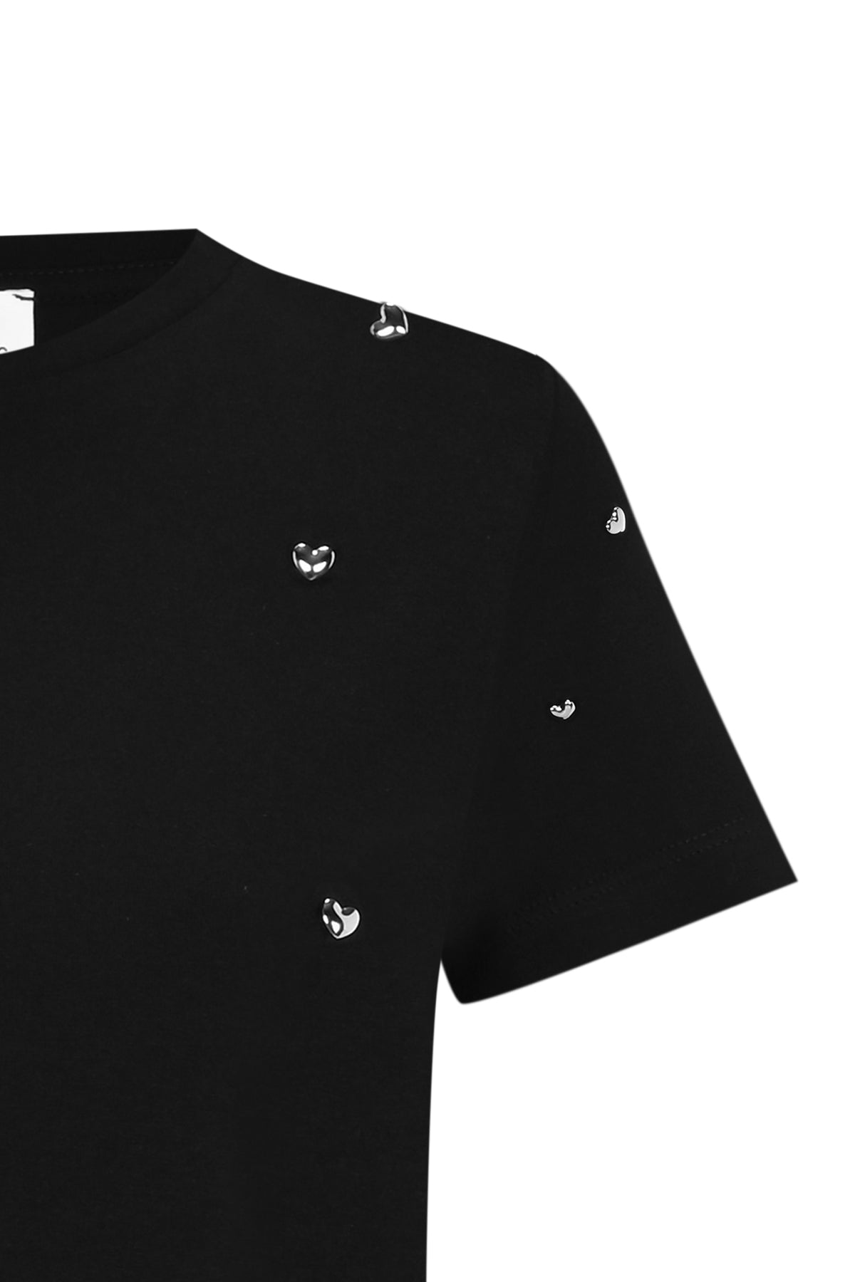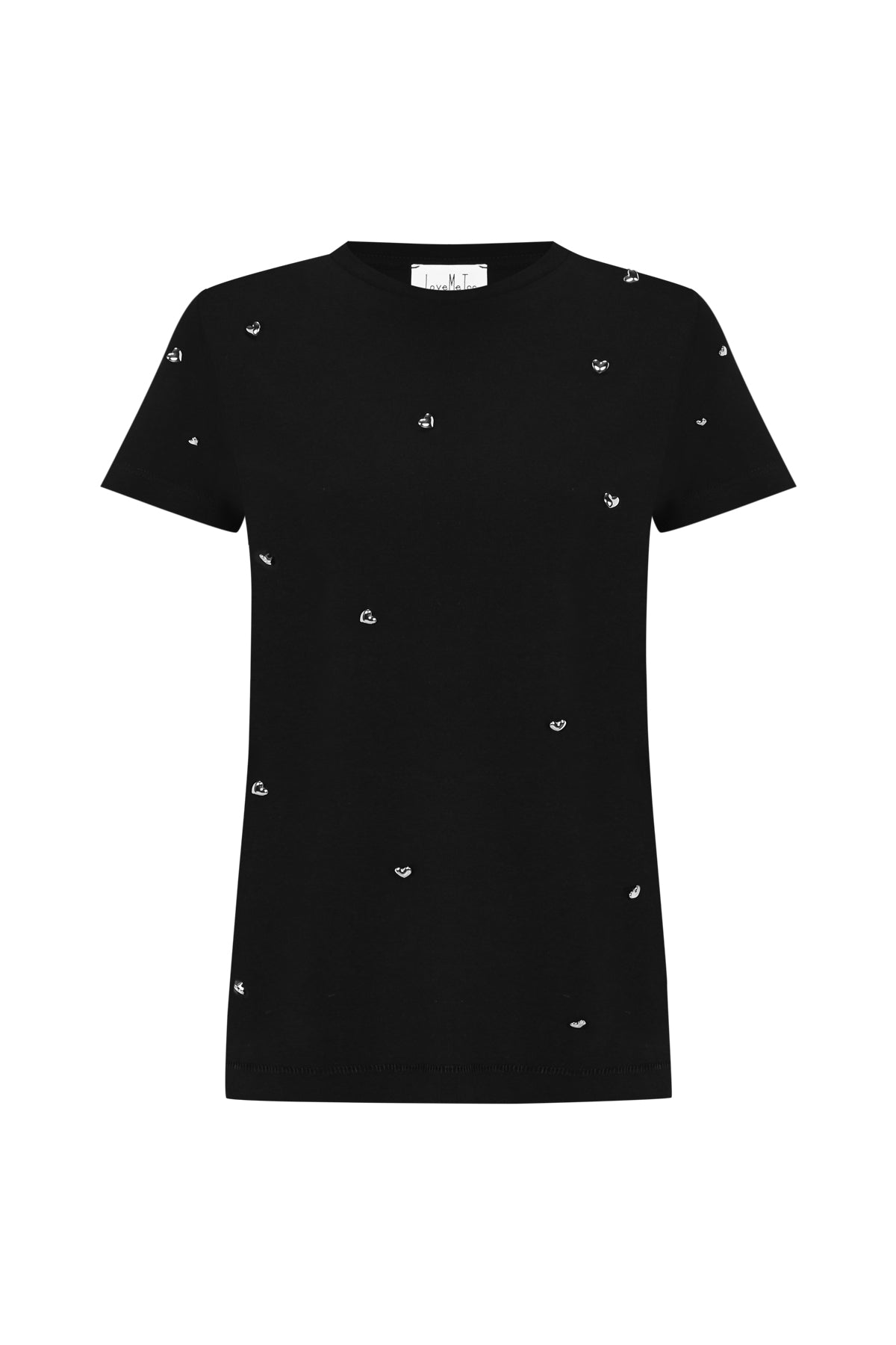 Ürün Açıklaması: Kalp şeklinde aksesuar detaylı bisiklet yaka, kısa kollu t-shirt Kumaş Bilgisi: %100 Cotton Bakım Önerileri: 30º Max Yıkama Tersten yıkayın Ağartıcı kullanmayın Tamburlu kurutma yapmayın Orta ısıda ütüleme yapın Kuru temizleme yapılabilir.