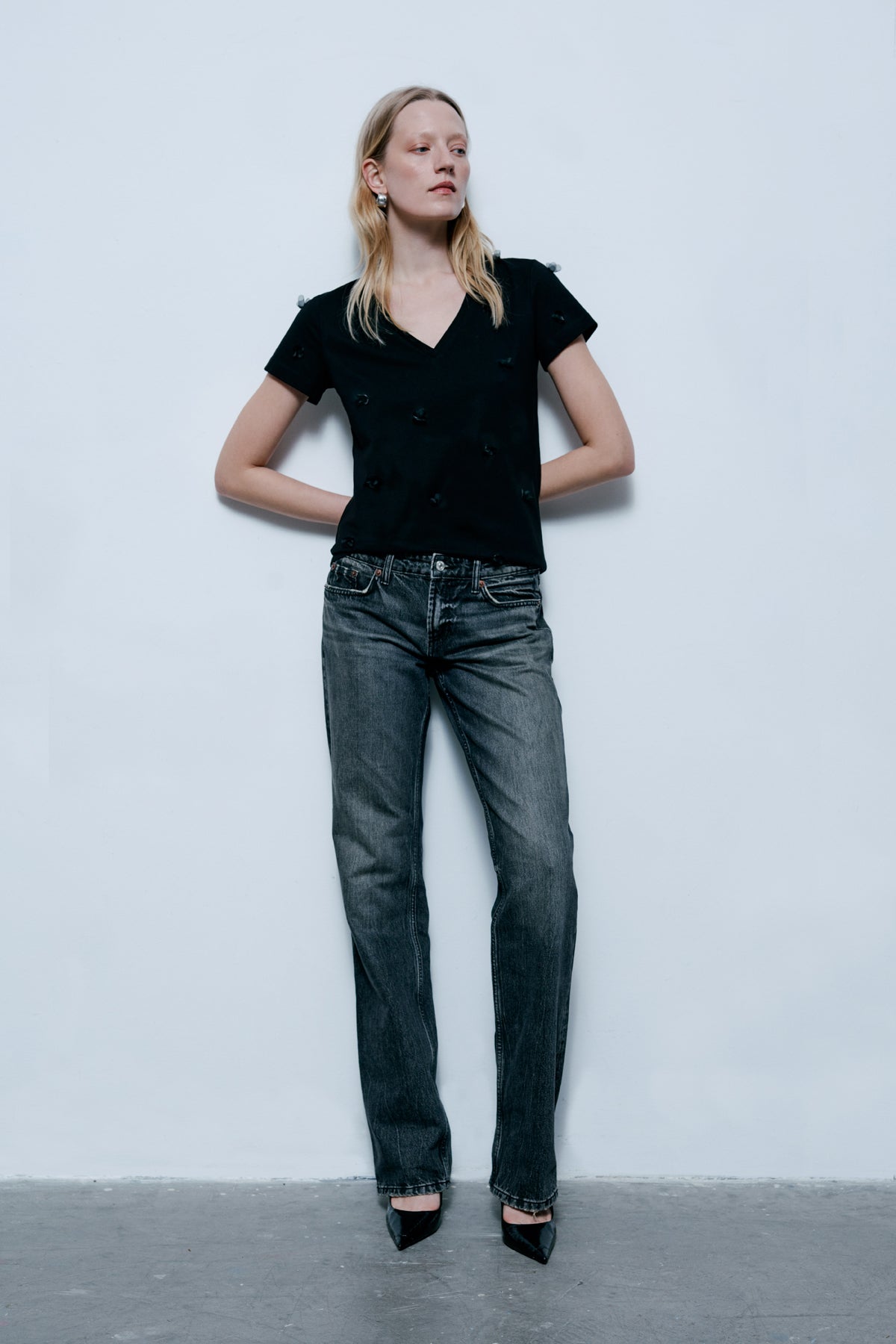 Ürün Açıklaması: Organze el yapımı çiçek aksesuar detaylı, el işçiliği V yaka t-shirt Kumaş Bilgisi: %100 Cotton Bakım Önerileri: 30º Max Yıkama Tersten yıkayın Ağartıcı kullanmayın Tamburlu kurutma yapmayın Orta ısıda ütüleme yapın