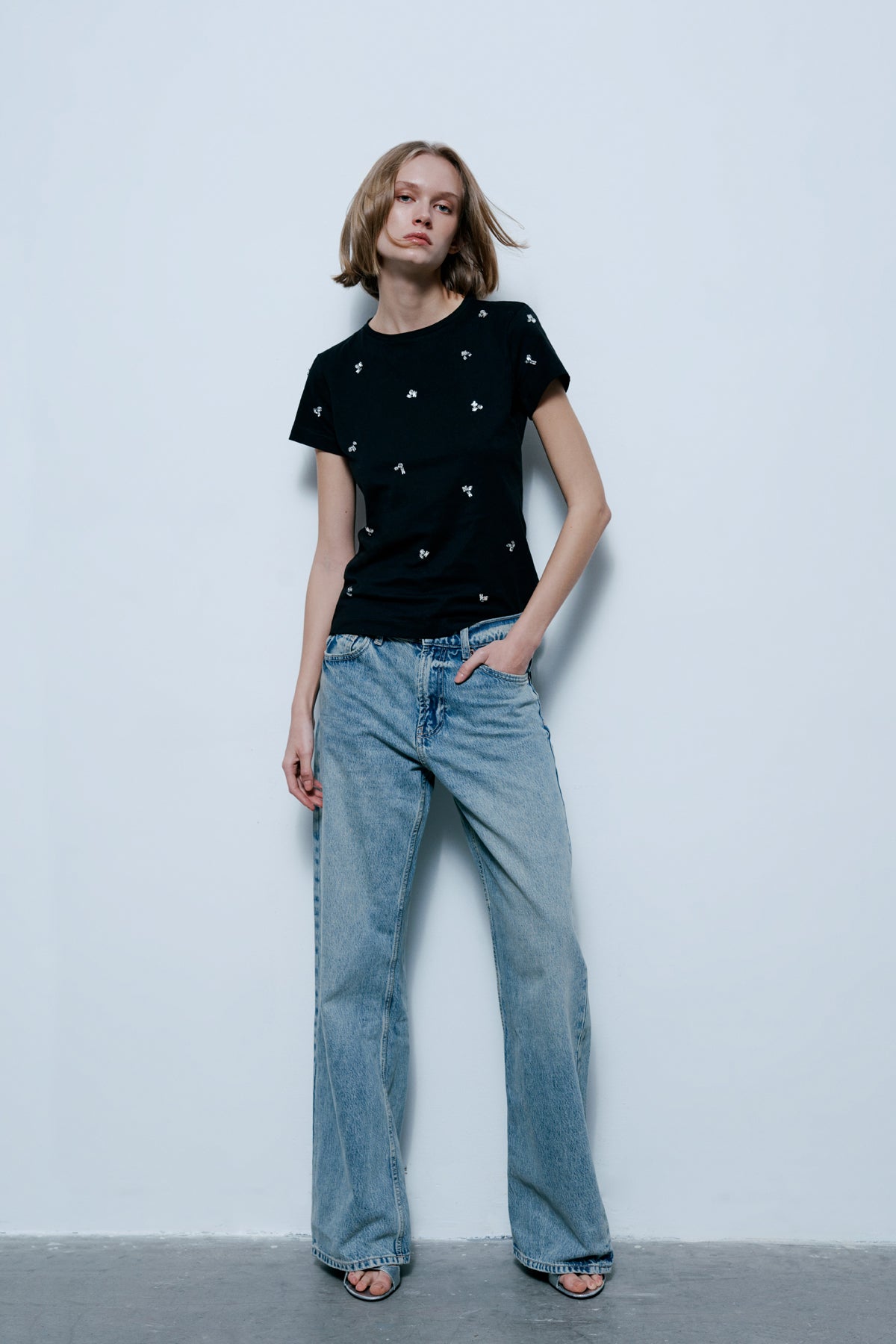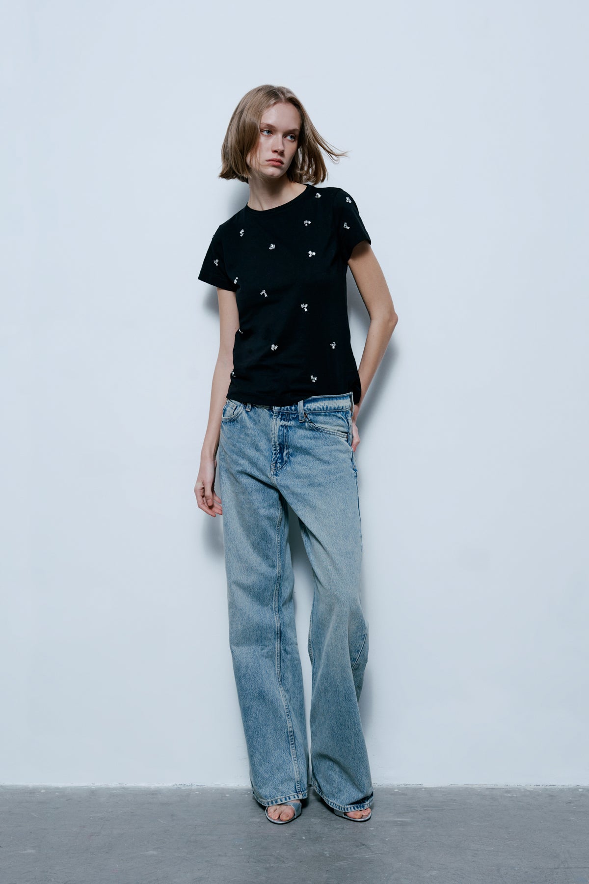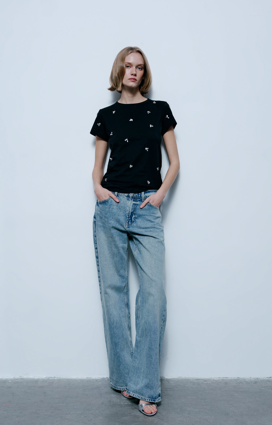 Ürün Açıklaması: Kristal taşlı aksesuar detaylı, el işçiliği bisiklet yaka t-shirt Kumaş Bilgisi: %100 Cotton Bakım Önerileri: 30º Max Yıkama Tersten yıkayın Ağartıcı kullanmayın Tamburlu kurutma yapmayın Orta ısıda ütüleme yapın