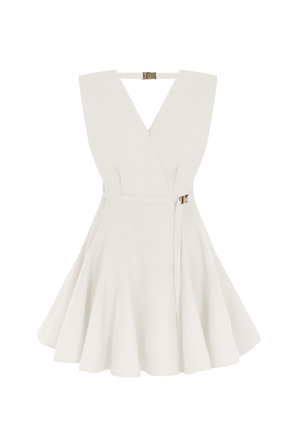Ürün Açıklaması: Sırt dekolteli, belden içte bağcık ayarlamalı ve gold renk toka aksesuarlı, volanlı kruvaze 100% Keten elbise Kumaş Bilgisi: 100% Linen Bakım Önerileri: Sadece kuru temizleme yapınız