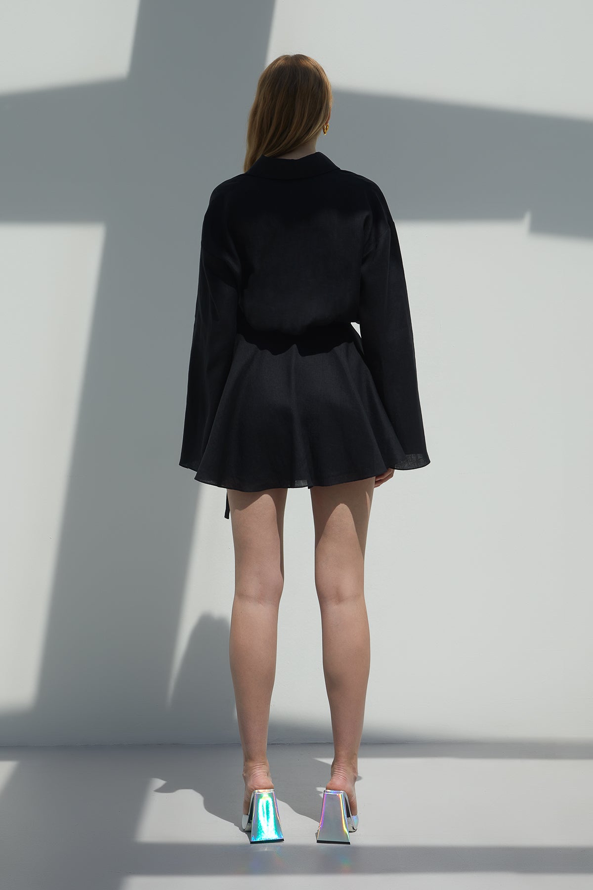 Ürün Açıklaması: Gömlek yaka, düğmeli, bel kısmı anvelop bağlama detaylı, flare kol 100% Keten mini elbise Kumaş Bilgisi: 100% Linen Bakım Önerileri: 30º Max Yıkama Yumuşatıcı kullanın Ağartıcı kullanmayın Tamburlu kurutma yapmayın Orta ısıda ütüleme yapın Kuru temizleme yapılabilir.
