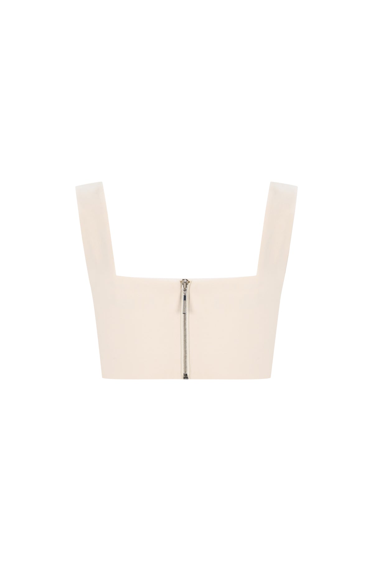 Sırt kısmı metal fermuarlı, kare yaka, kalın askılı crop bluz