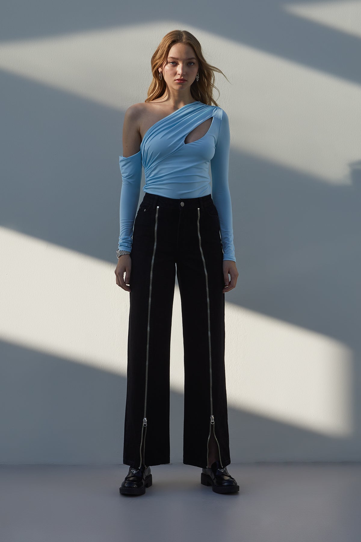 Ürün Açıklaması: Yandan fermuarlı, tek omuz, ön kısmı dekolte detaylı, tek kolu düşük kol, uzun kollu bluz Kumaş Bilgisi: %95 Polyester, %5 Elastan Bakım Önerileri: 30º Max Yıkama Ağartıcı kullanmayın Tamburlu kurutma yapmayın Düşük ısıda ütüleme yapın Kuru temizleme yapılabilir. Kalıp Bilgisi: Dar kesim, ara beden iseniz büyük olanı tercih ediniz.