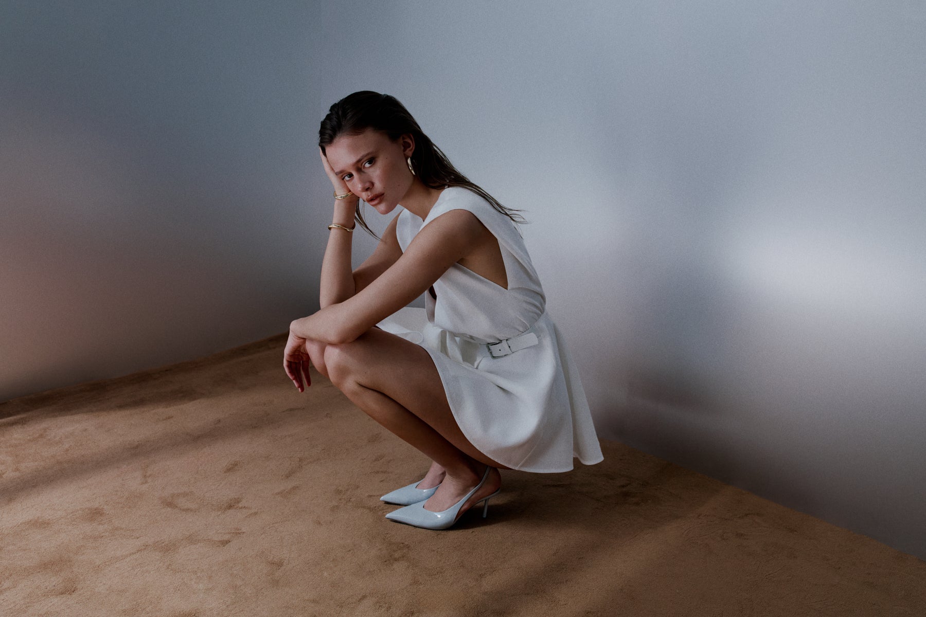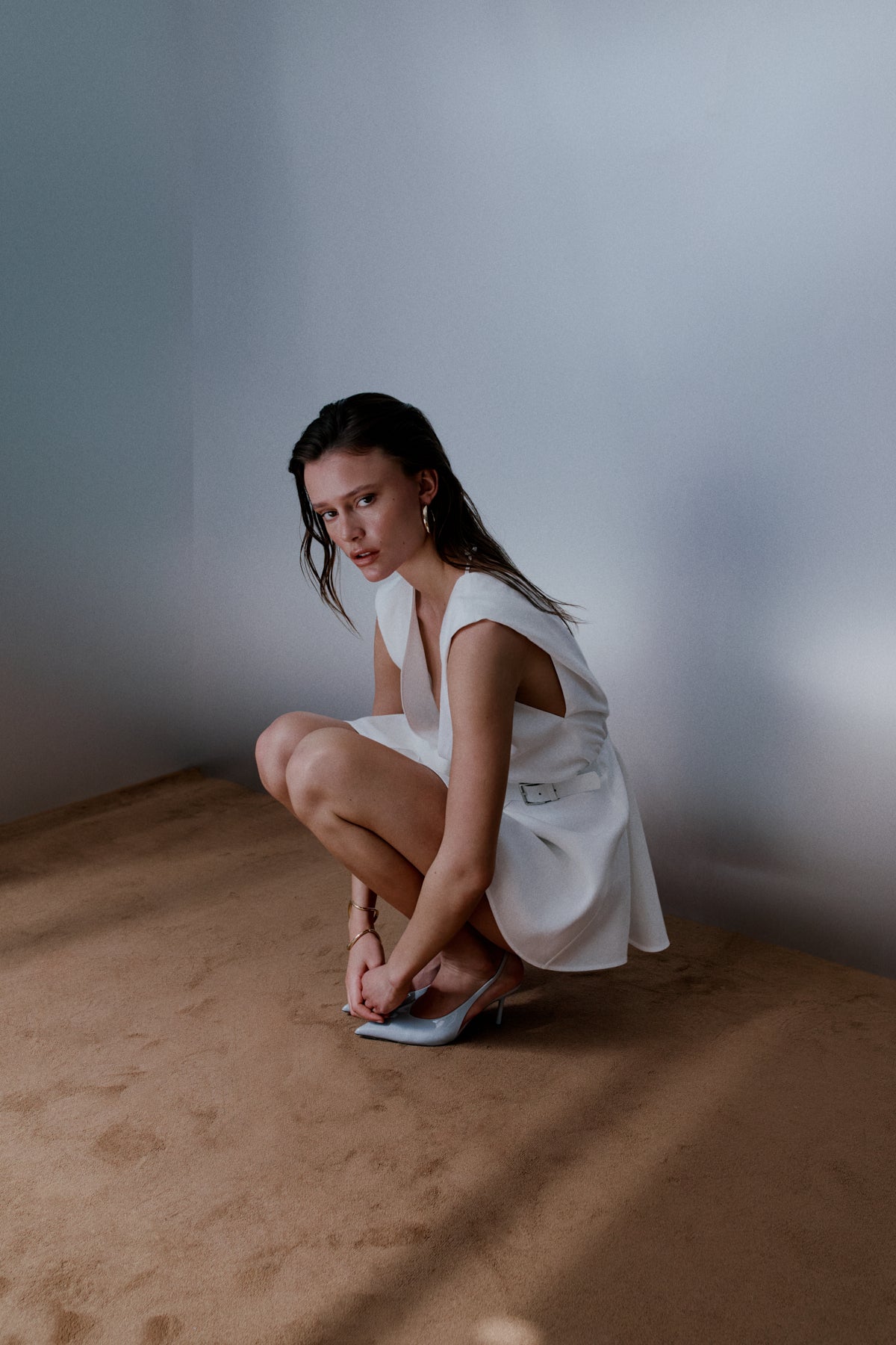 Ürün Açıklaması: Sırt dekolteli, boyundan ve iç belden bağcık ayarlamalı, toka aksesuarlı, volanlı kruvaze 100% Keten mini elbise