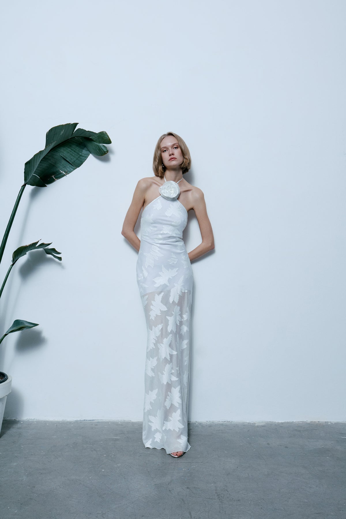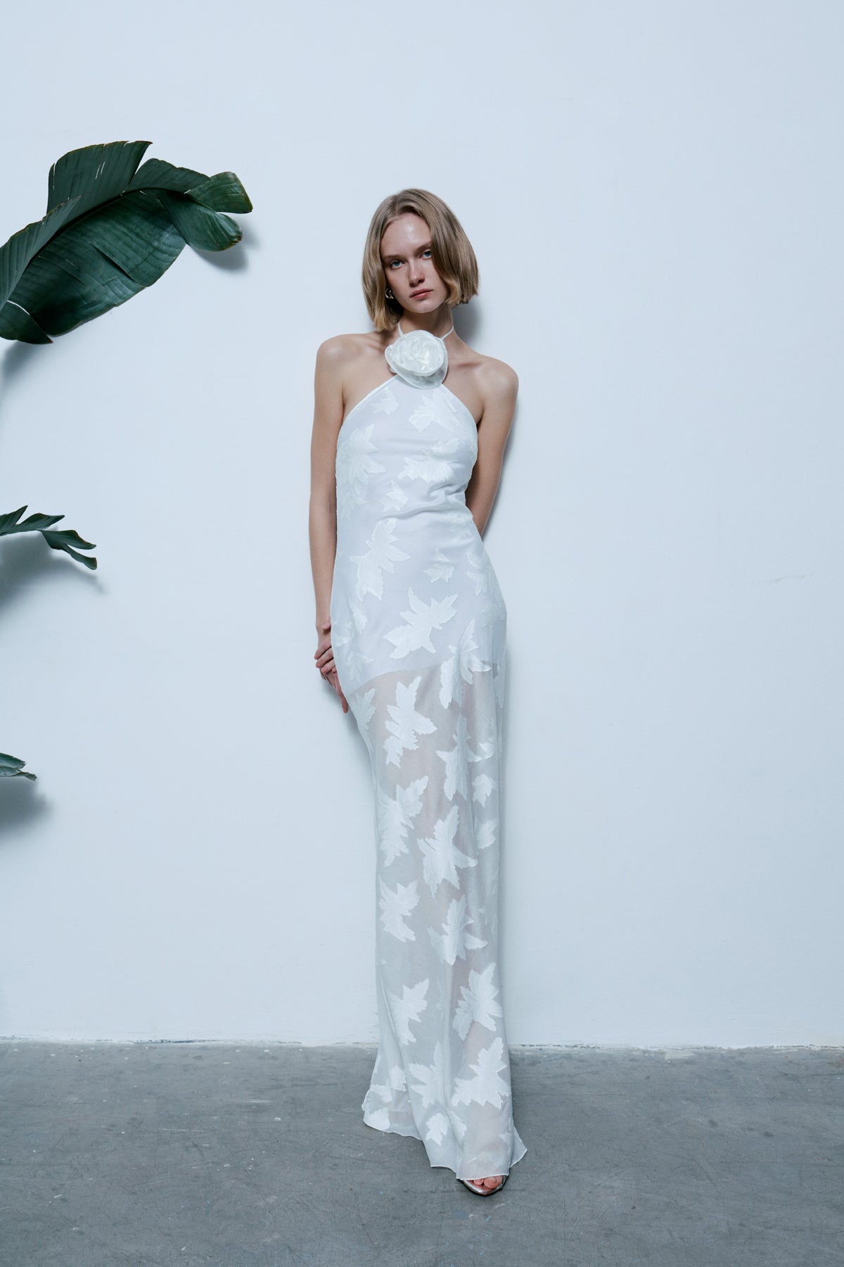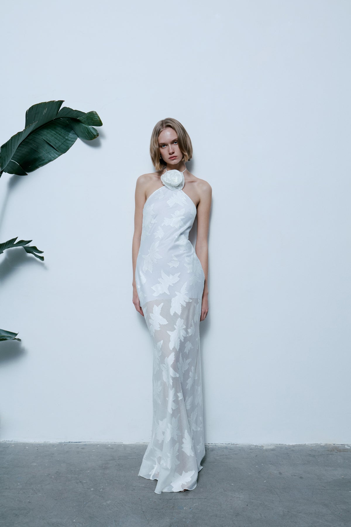 Ürün Açıklaması:Kendi kumaşından tasarlanmış takma çıkma çiçek aksesuarlı, dokulu desenli kumaştan üretilmiş yarı boy astarlı, uzun elbise Kumaş Bilgisi:%90 viscon %10 pes Bakım Önerileri: 30º Max Yıkama Tersten yıkayınız Ağartıcı kullanmayın Tamburlu kurutma yapmayın Düşük ısıda ütüleme yapın