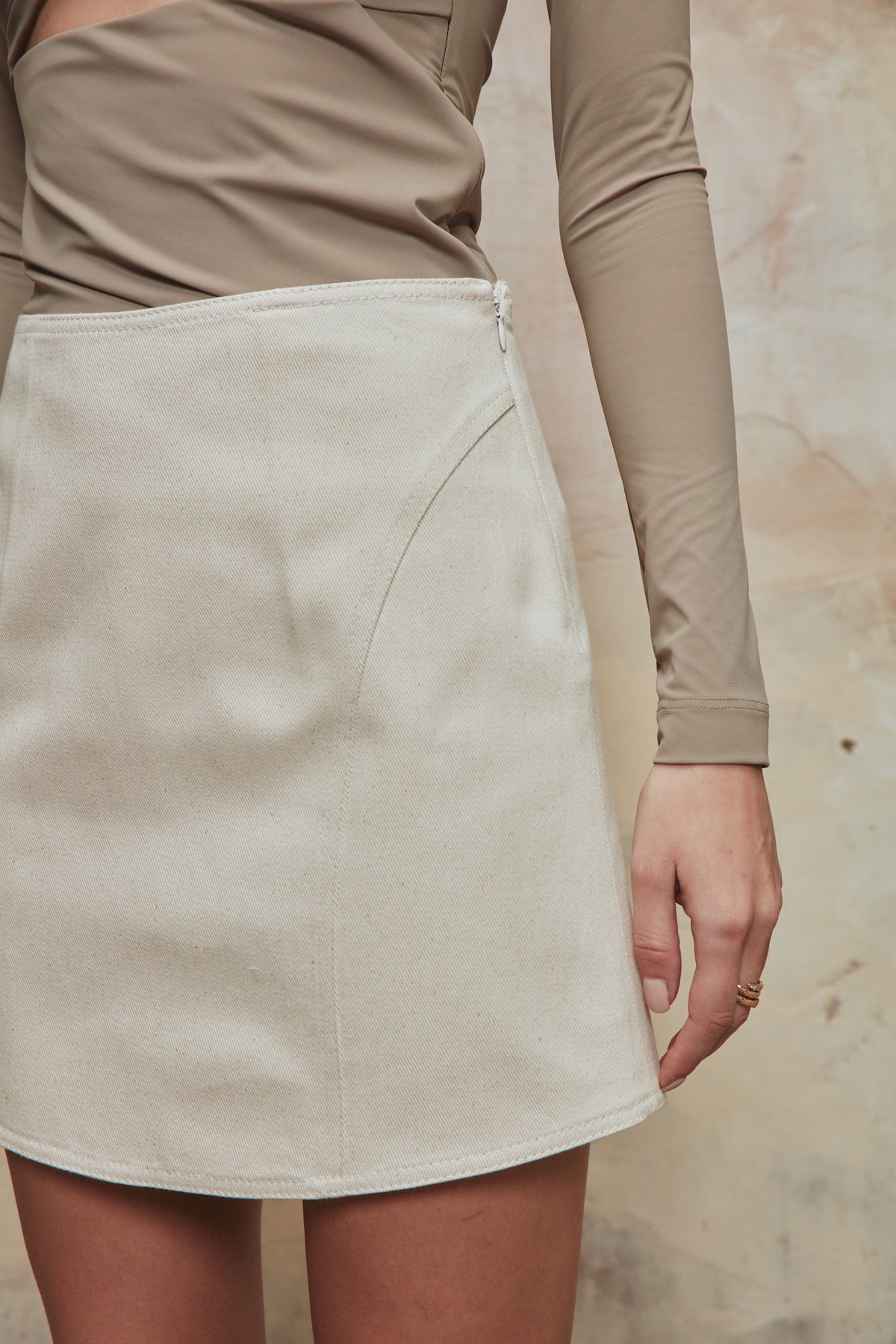 Ürün Açıklaması: Yandan gizli fermuar kapamalı, mini çan etek Kumaş Bilgisi:%100 Cotton Bakım Önerileri: Kuru temizleme yapılabilir. 30º Max yıkama. Ağartıcı kullanmayınız. Tamburlu kurutma yapmayınız. Orta ısıda ütülenebilir.