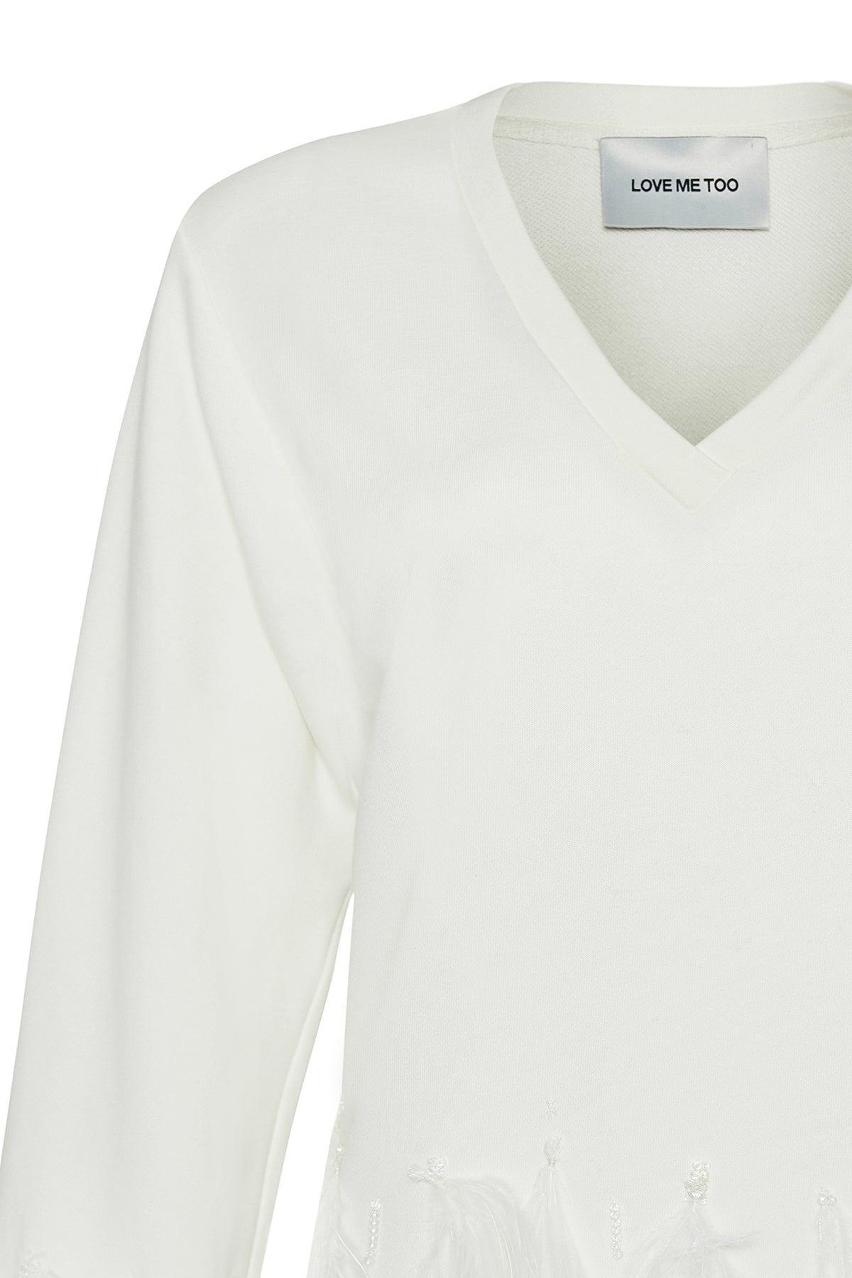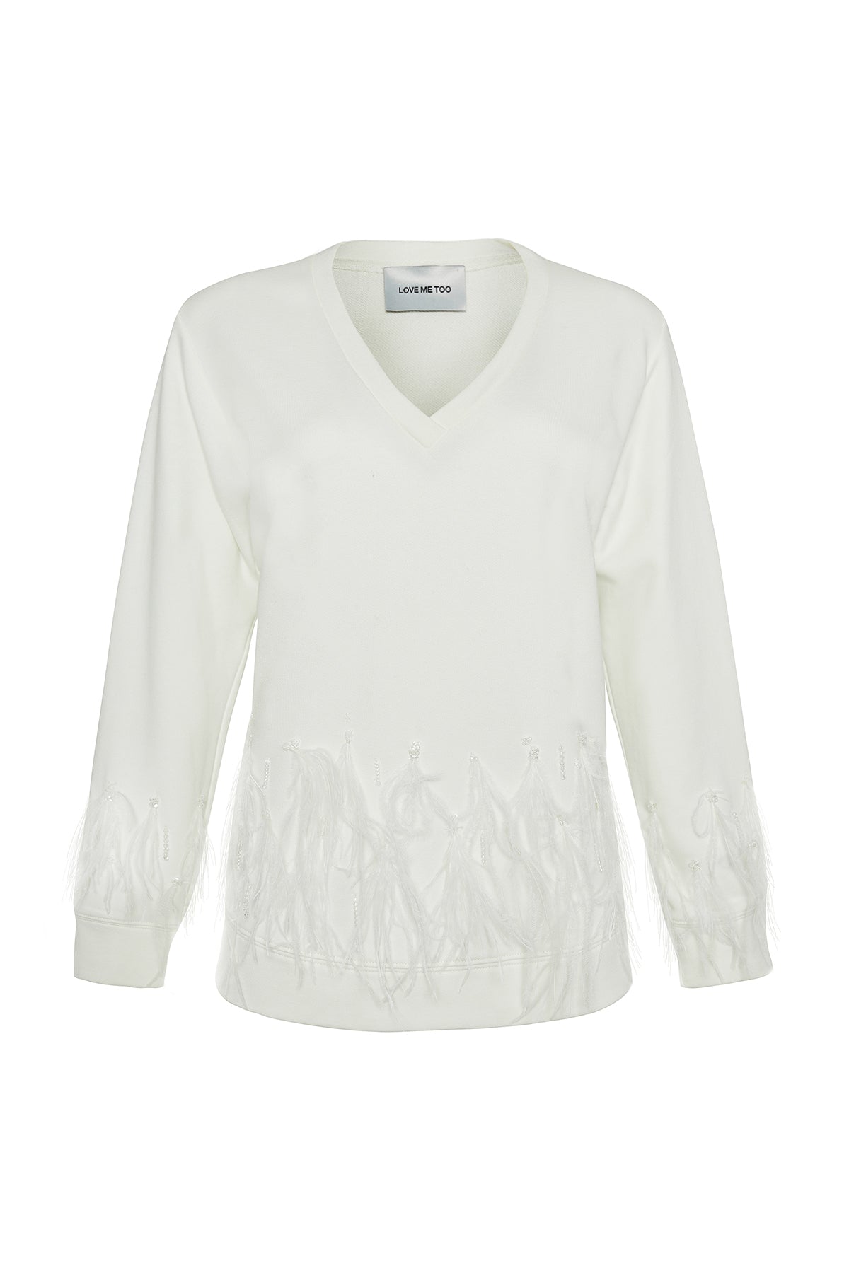 Ürün Açıklaması: Etek uçları boncuk ve otriş detaylı V yaka sweatshirt Kumaş Bilgisi: %100 Cotton Bakım Önerileri: Sadece Kuru temizleme yapılabilir.