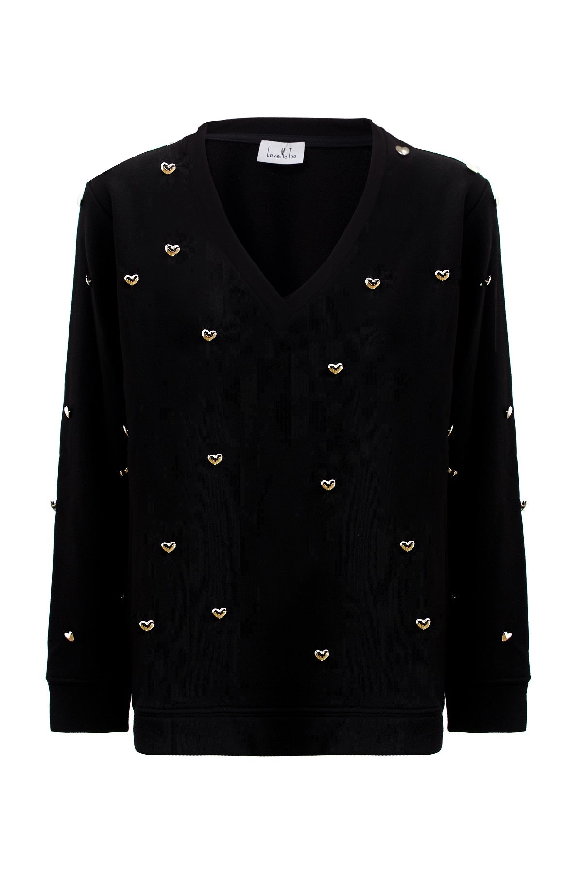 Ürün Açıklaması: Kalp şeklinde aksesuar işlemeli, V yaka sweatshirt Kumaş Bilgisi: %100 Cotton Bakım Önerileri: 30º Max Yıkama Tersten yıkayın Ağartıcı kullanmayın Tamburlu kurutma yapmayın Orta ısıda ütüleme yapın Kuru temizleme yapılabilir.