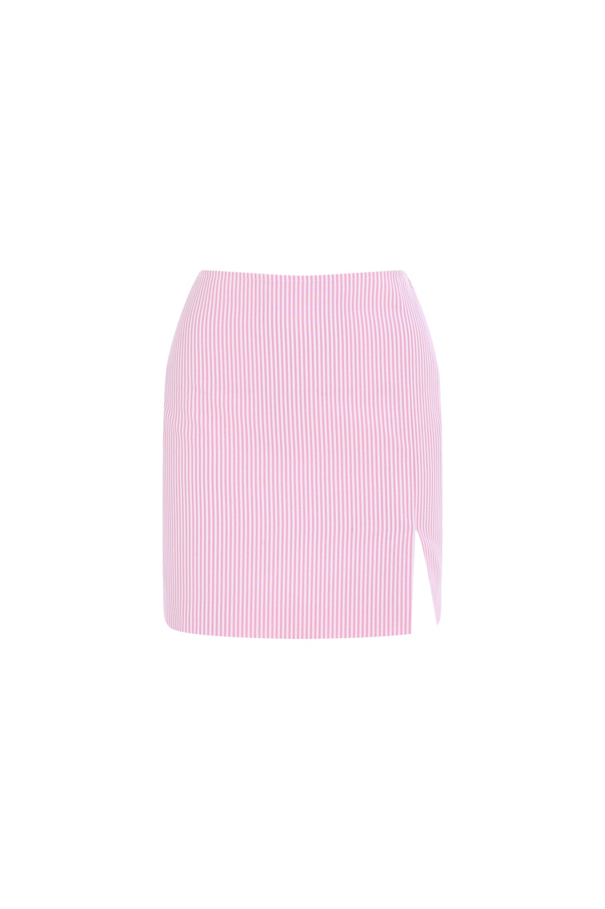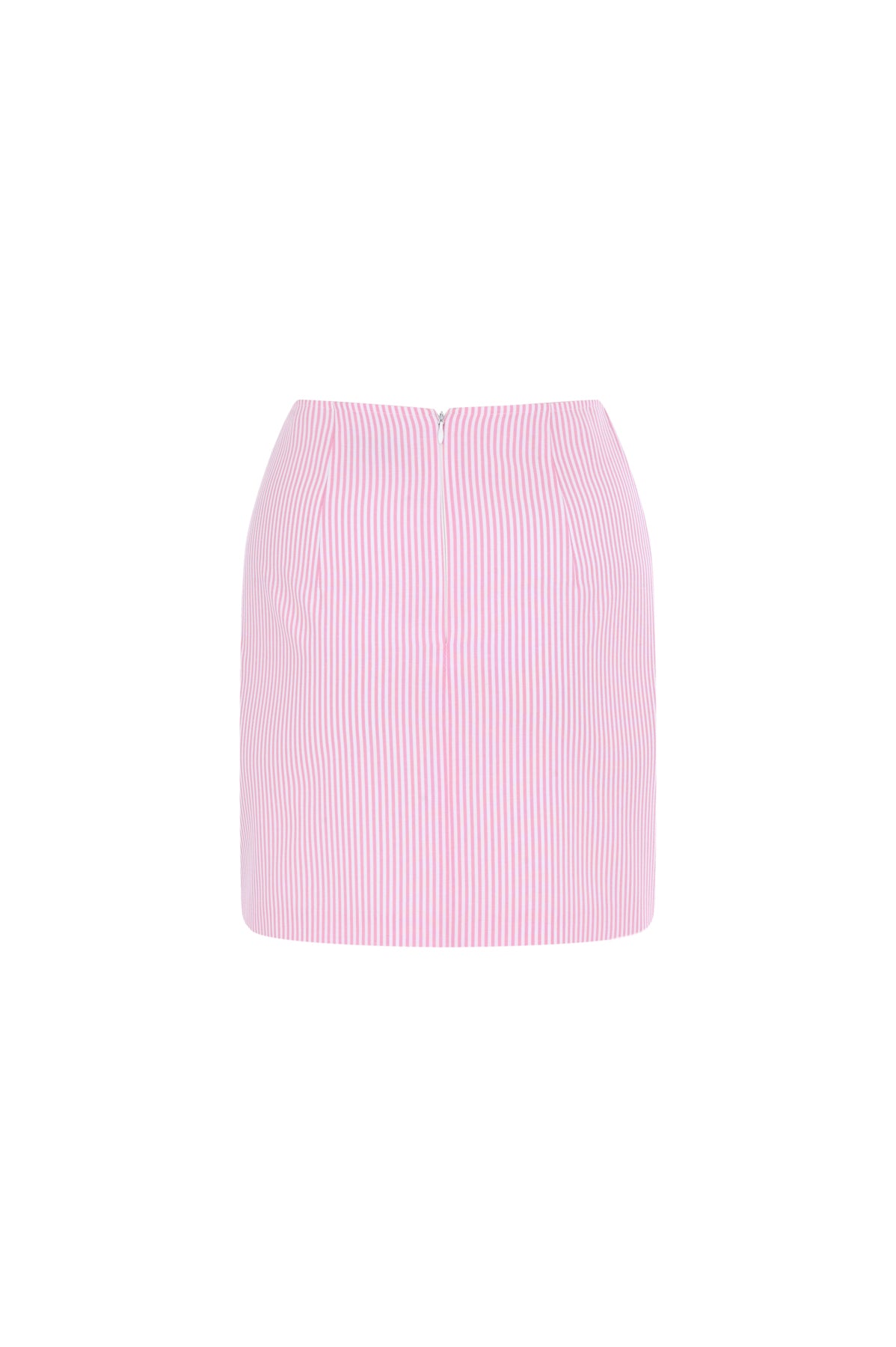 Ürün Açıklaması: Yırtmaç detaylı, 100% Cotton vual astarlı, çizgili mini etek Kumaş Bilgisi:%60 cotton %40 polyester Bakım Önerileri:30º Max Yıkama Ağartıcı kullanmayın Tamburlu kurutma yapmayın Düşük ısıda ütüleme yapın