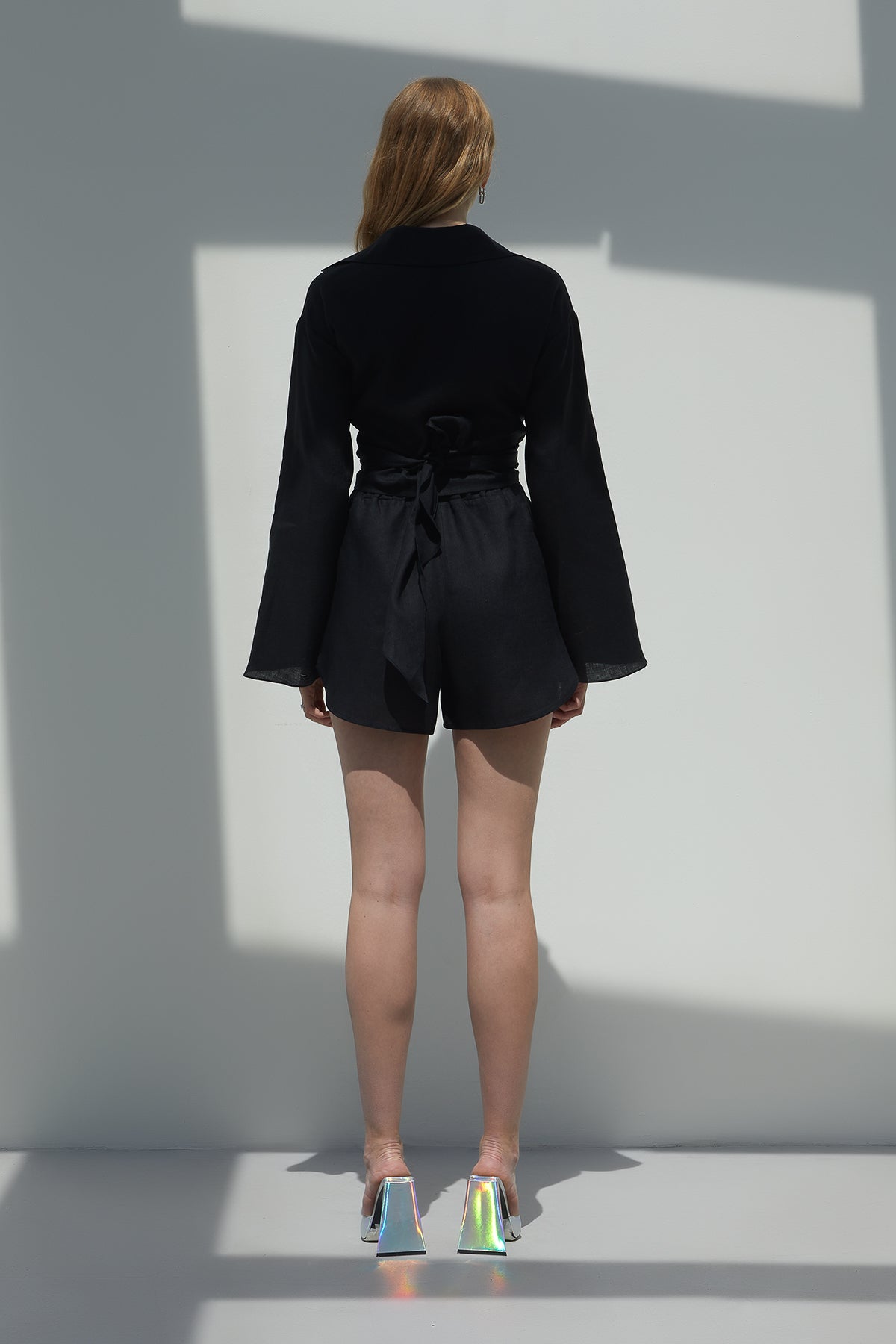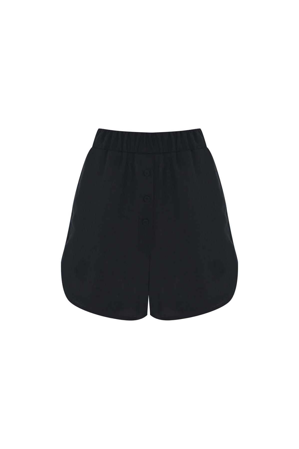 Ürün Açıklaması: Yuvarlak kesim, bel kısmı lastikli, ön kısmı patlı süs düğmeli mini şort Kumaş Bilgisi: 100% Linen Bakım Önerileri: 30º Max Yıkama Yumuşatıcı kullanın Ağartıcı kullanmayın Tamburlu kurutma yapmayın Orta ısıda ütüleme yapın Kuru temizleme yapılabilir.
