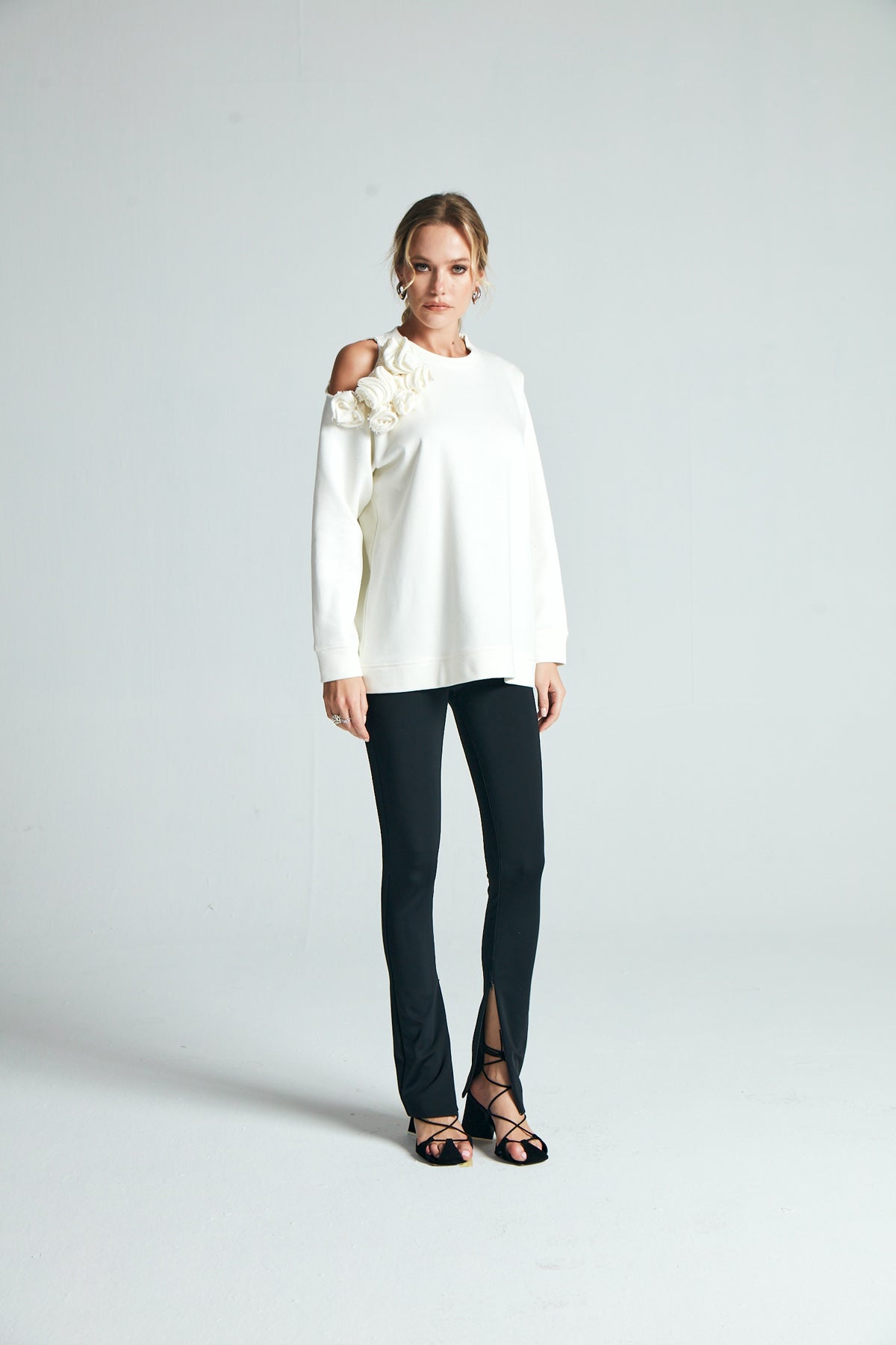 Ürün Açıklaması:Omuz kısmı çiçekli aksesuar detaylı bisiklet yaka sweatshirt Kumaş Bilgisi: %100 Cotton Bakım Önerileri: 30º Max Yıkama Tersten yıkayın Ağartıcı kullanmayın Tamburlu kurutma yapmayın Orta ısıda ütüleme yapın Kuru temizleme yapılabilir.