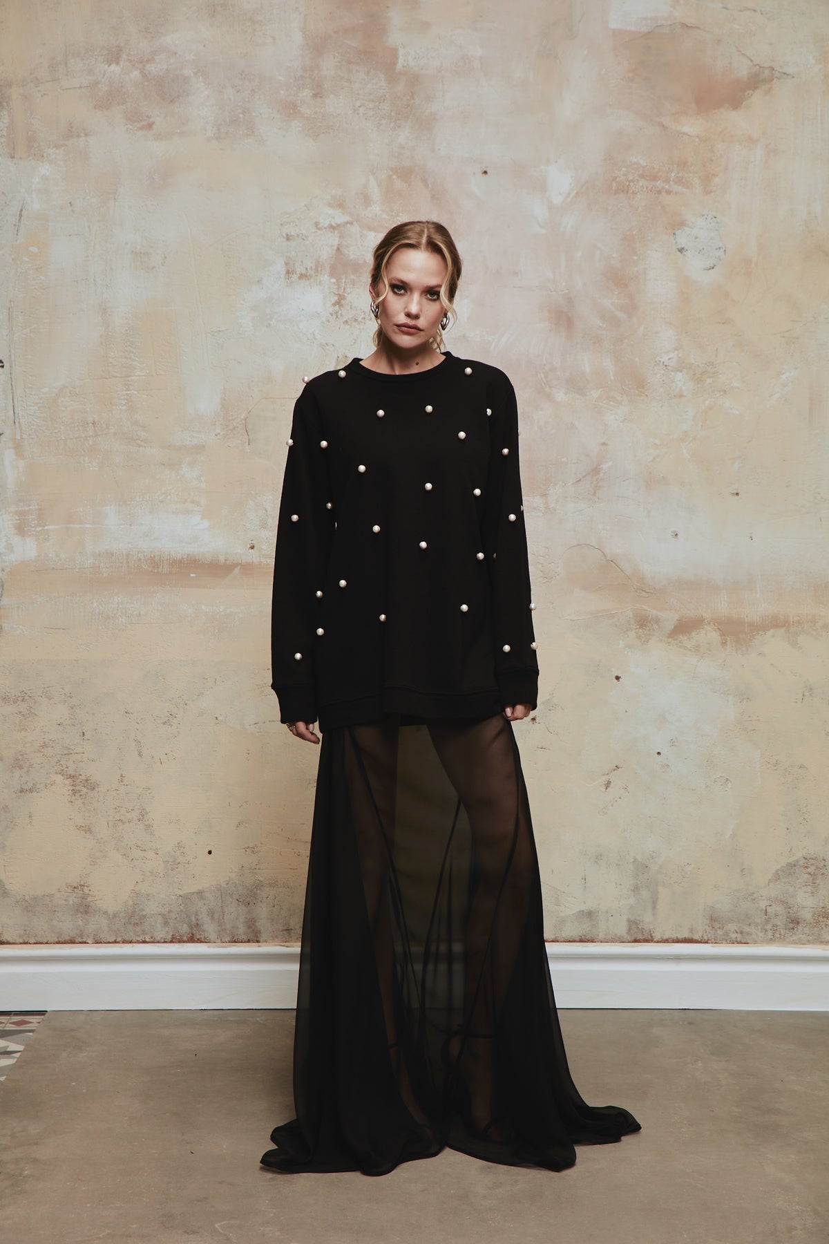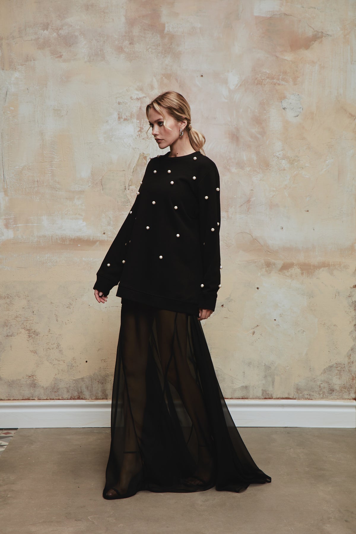Ürün Açıklaması: Şekilsiz incili aksesuar işlemeli bisiklet yaka sweatshirt Kumaş Bilgisi: %100 Cotton Bakım Önerileri: 30º Max Yıkama Tersten yıkayın Ağartıcı kullanmayın Tamburlu kurutma yapmayın Orta ısıda ütüleme yapın Kuru temizleme yapılabilir.