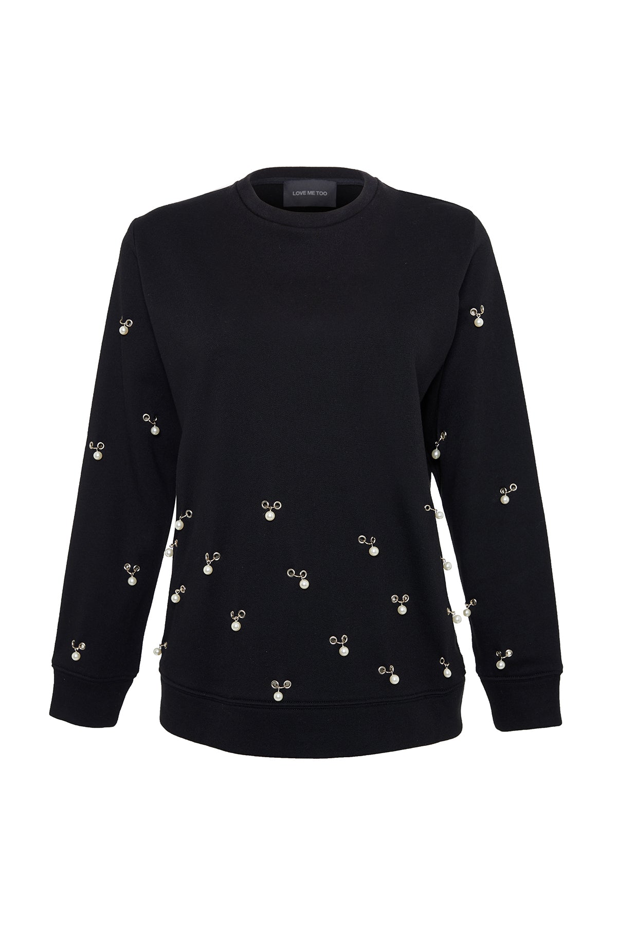Ürün Açıklaması: Etek uçları ve kolları kuş gözlü ve incili aksesuar detaylı bisiklet yaka sweatshirt Kumaş Bilgisi: %100 Cotton Bakım Önerileri: 30º Max Yıkama Tersten yıkayın Ağartıcı kullanmayın Tamburlu kurutma yapmayın Orta ısıda ütüleme yapın Kuru temizleme yapılabilir.