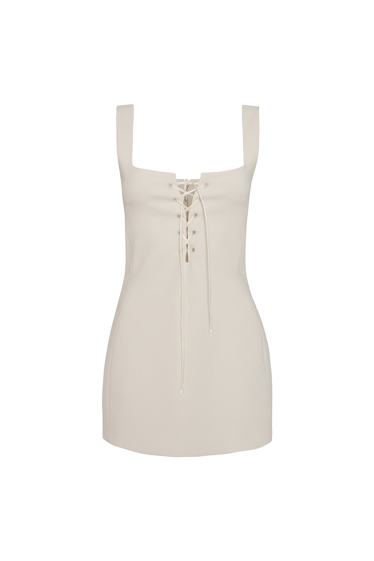 Ürün Açıklaması:Kare yaka, kalın askılı, kuş gözü aksesuarlı, çapraz bağlamalı dekolte detaylı, sırt kısmı gizli fermuarlı, çift katlı tasarlanmış mini elbise Kumaş Bilgisi:%76 pes %17 vıscon %7 lycra Bakım Önerileri: Sadece kuru temizleme yapılabilir.