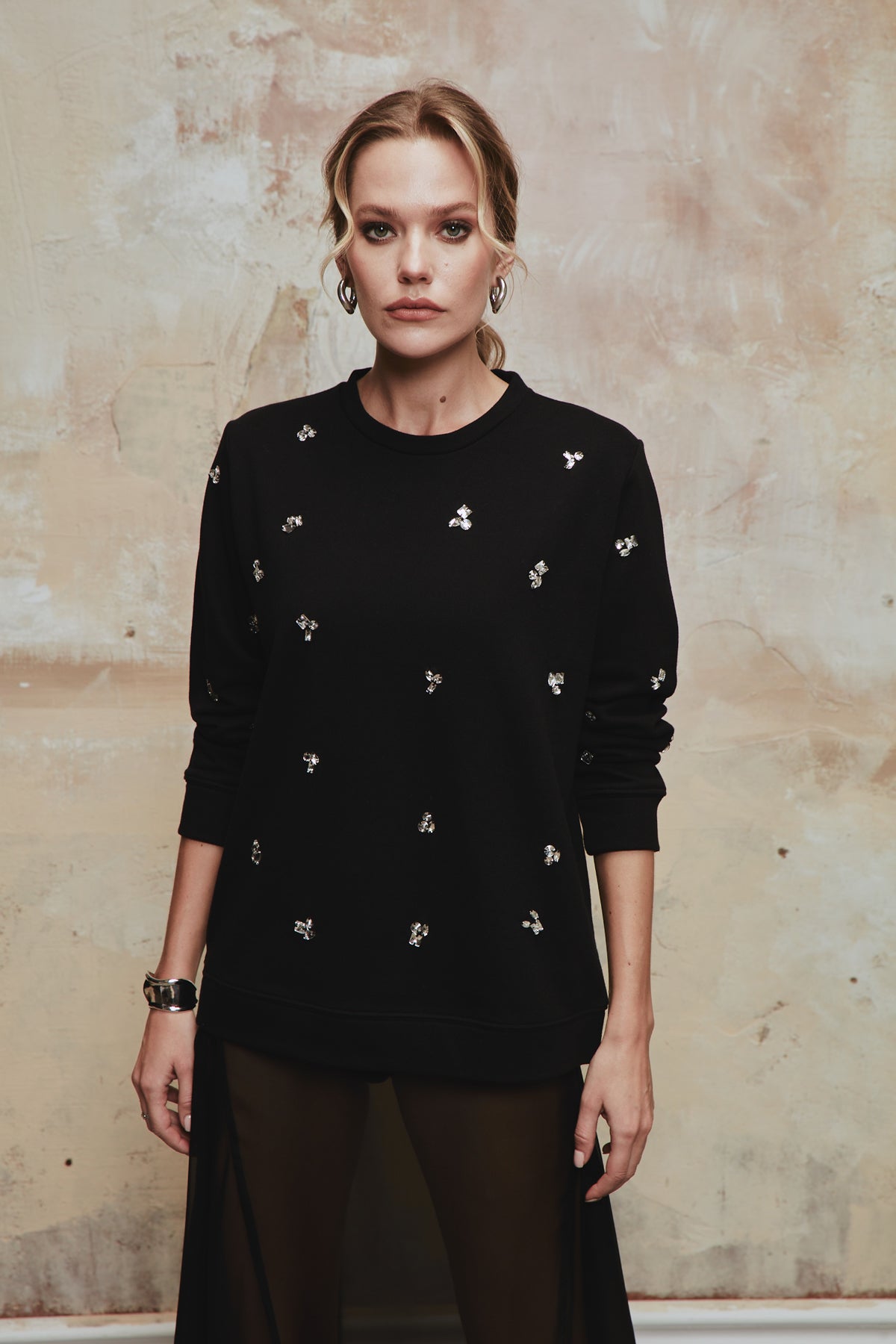 Ürün Açıklaması:Kristal taşlı aksesuar işlemeli bisiklet yaka sweatshirt Kumaş Bilgisi: %100 Cotton Bakım Önerileri: 30º Max Yıkama Tersten yıkayın Ağartıcı kullanmayın Tamburlu kurutma yapmayın Orta ısıda ütüleme yapın Kuru temizleme yapılabilir.