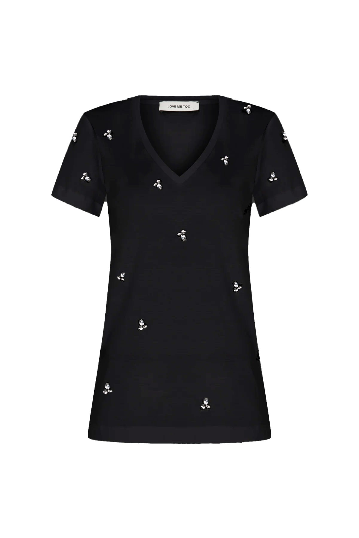 Ürün Açıklaması: Kristal taşlı aksesuar detaylı, el işçiliği V yaka t-shirt Kumaş Bilgisi: %100 Cotton Bakım Önerileri: 30º Max Yıkama Tersten yıkayın Ağartıcı kullanmayın Tamburlu kurutma yapmayın Orta ısıda ütüleme yapın