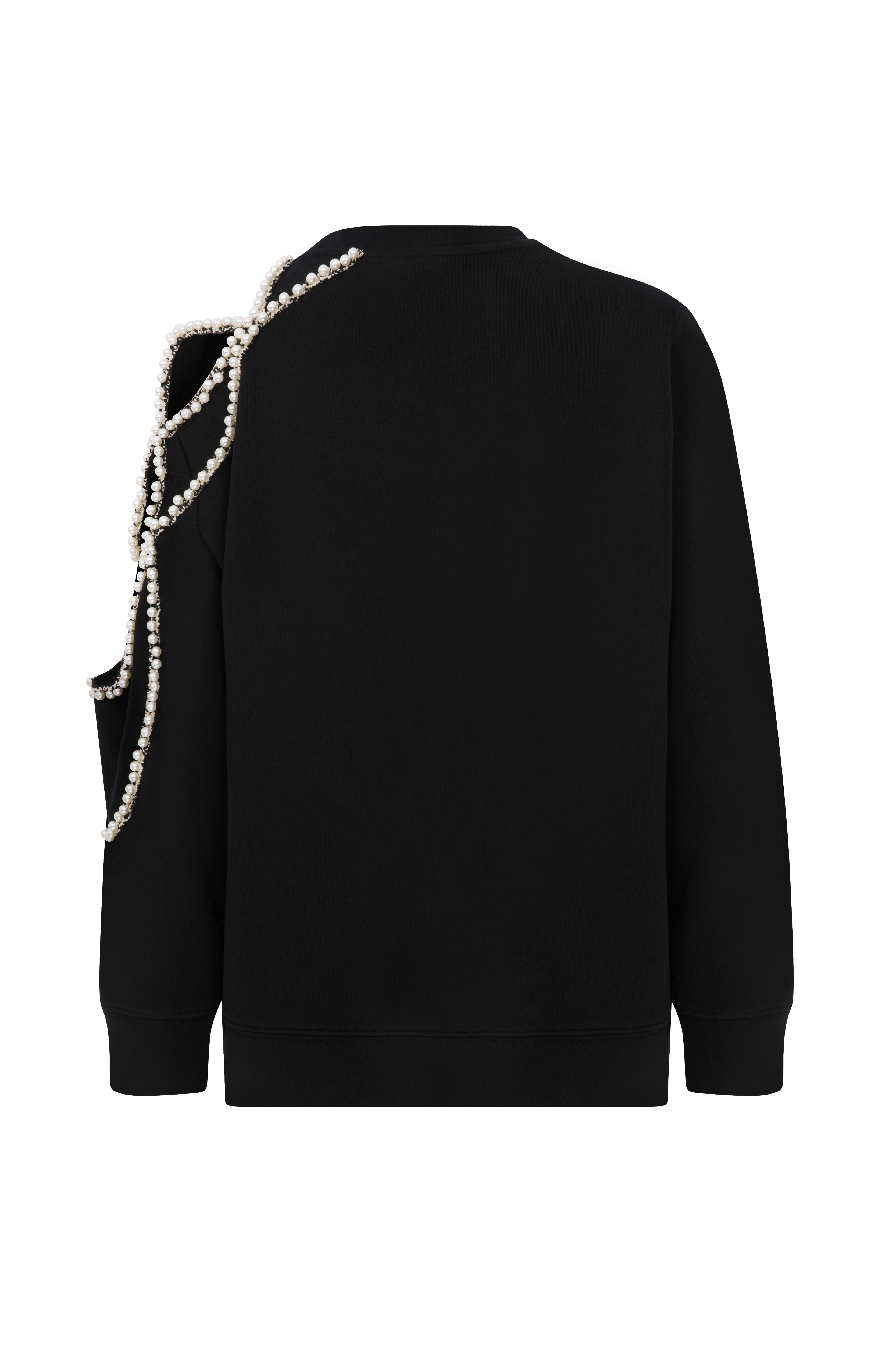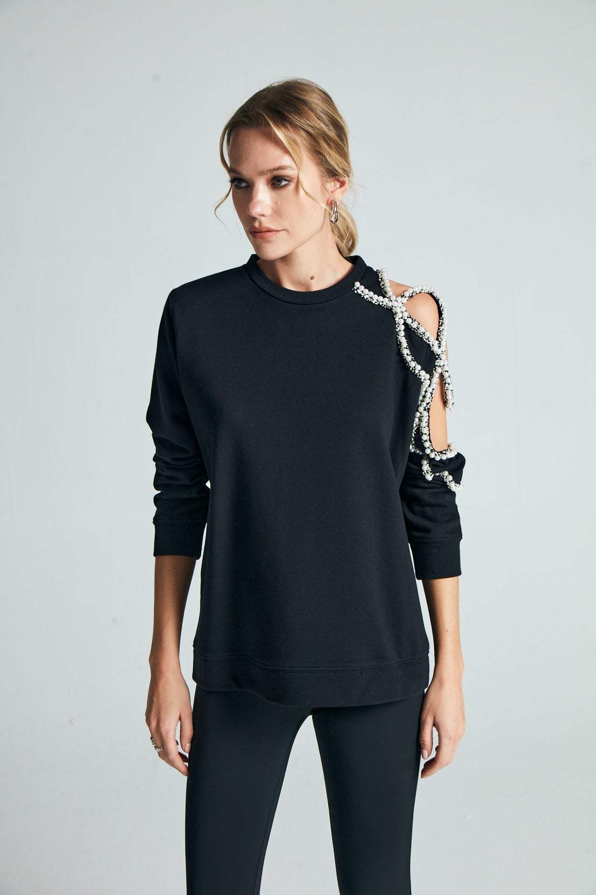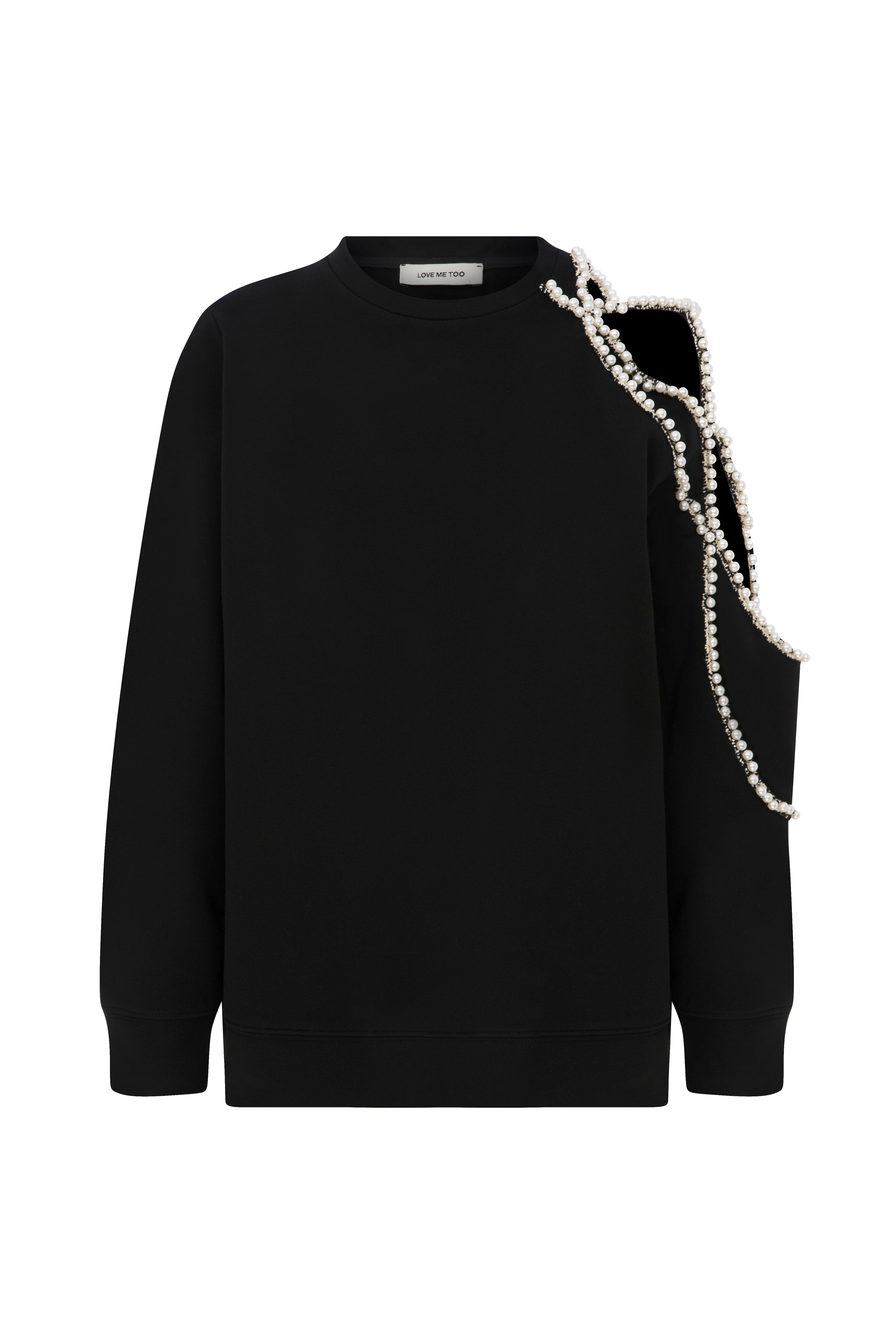 Ürün Açıklaması:Tek omuzu incili aksesuar işlemeli ve dekolteli, bisiklet yaka sweatshirt Kumaş Bilgisi: %100 Cotton Bakım Önerileri: 30º Max Yıkama Tersten yıkayın Ağartıcı kullanmayın Tamburlu kurutma yapmayın Orta ısıda ütüleme yapın Kuru temizleme yapılabilir.