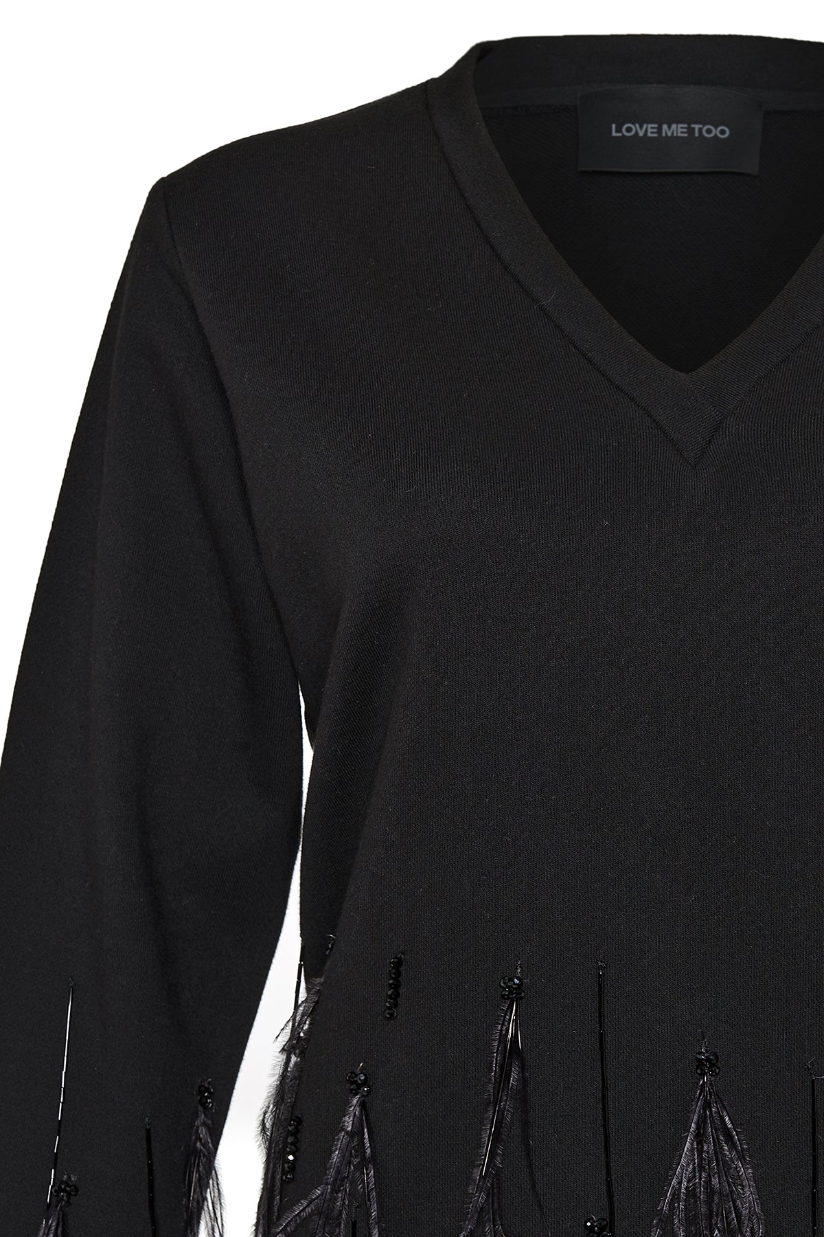 Ürün Açıklaması: Etek uçları boncuk ve otriş detaylı V yaka sweatshirt Kumaş Bilgisi: %100 Cotton Bakım Önerileri: Sadece Kuru temizleme yapılabilir.