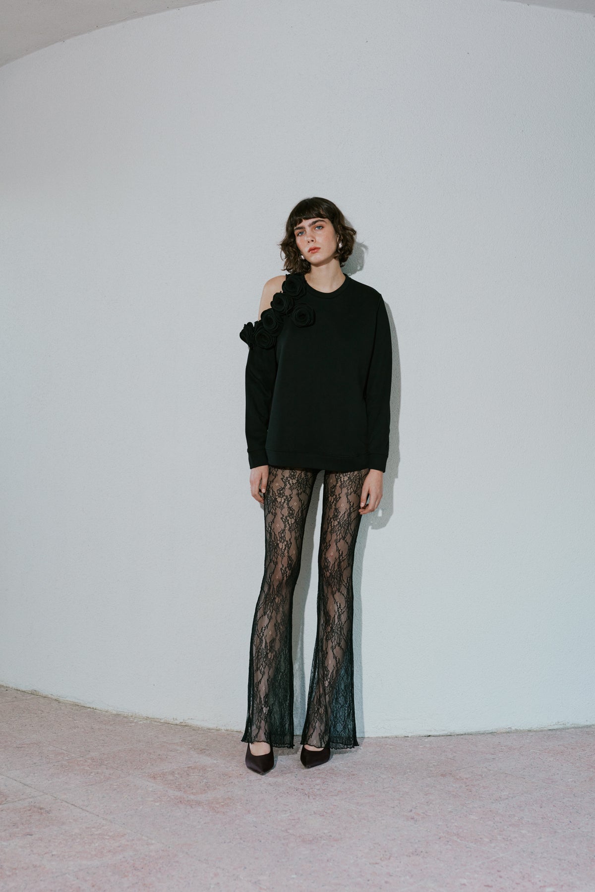 Ürün Açıklaması: Omuz kısmı çiçekli aksesuar detaylı bisiklet yaka sweatshirt Kumaş Bilgisi: %100 Cotton Bakım Önerileri: 30º Max Yıkama Tersten yıkayın Ağartıcı kullanmayın Tamburlu kurutma yapmayın Orta ısıda ütüleme yapın Kuru temizleme yapılabilir.